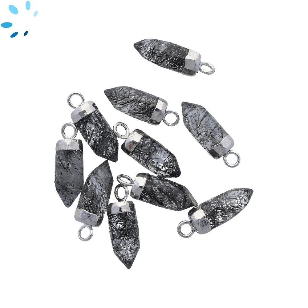 Tourmaline Quartz Spike Charm Pendant 13x5mm Silver Electroplated - Set of 4