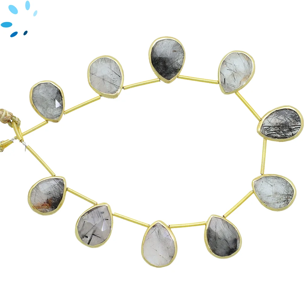 Tourmaline Quartz Faceted Pear Bezel Set Beads 14x10 - 16x12mm Top Drilled - 18k Gold Plated Sterling Silver