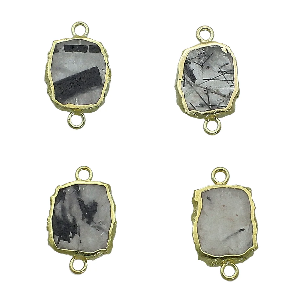 Tourmaline Quartz Slice Connector 12x10 - 14x12mm 18k Gold Electroplated - Set of 4