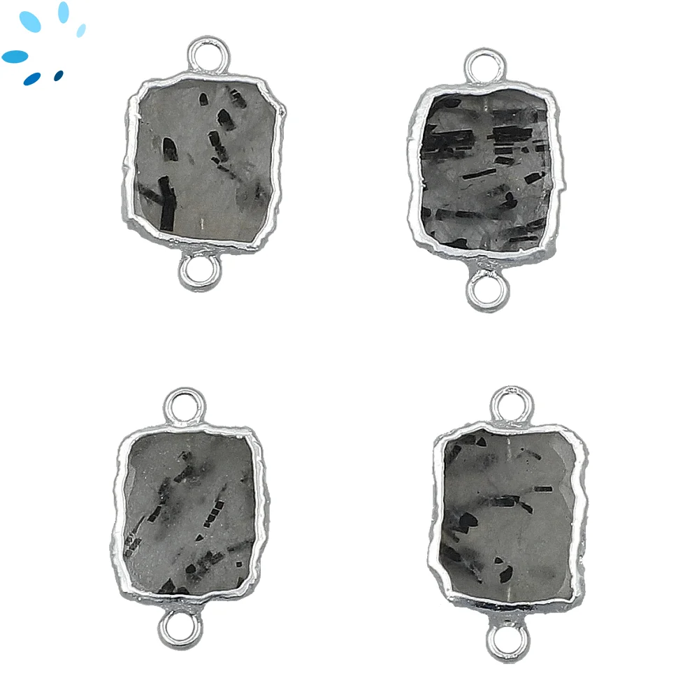 Tourmaline Quartz Slice Connector 12x10 - 14x12mm Silver Electroplated - Set of 4