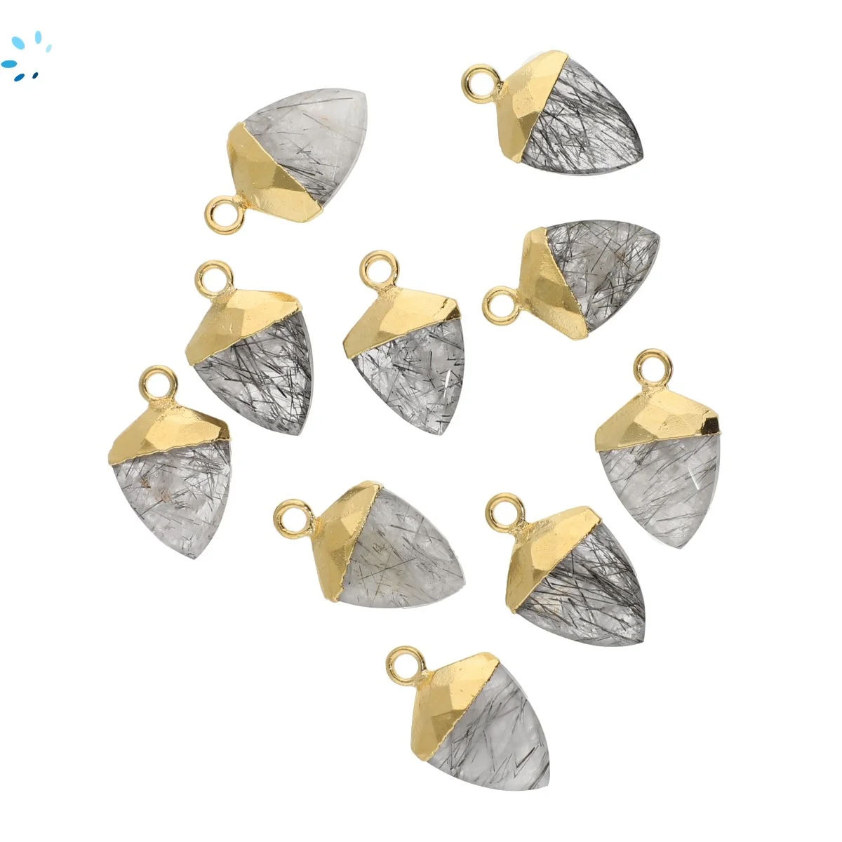 Tourmaline Quartz Horn Pendant Charm 13x10 - 15x12mm 18k Gold Electroplated - Set of 4