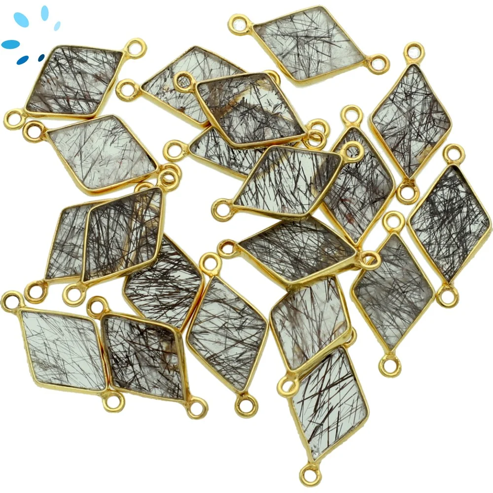 Tourmaline Quartz Diamond Bezel Connector 16x11mm - 18k Gold Plated Sterling Silver - Set of 4