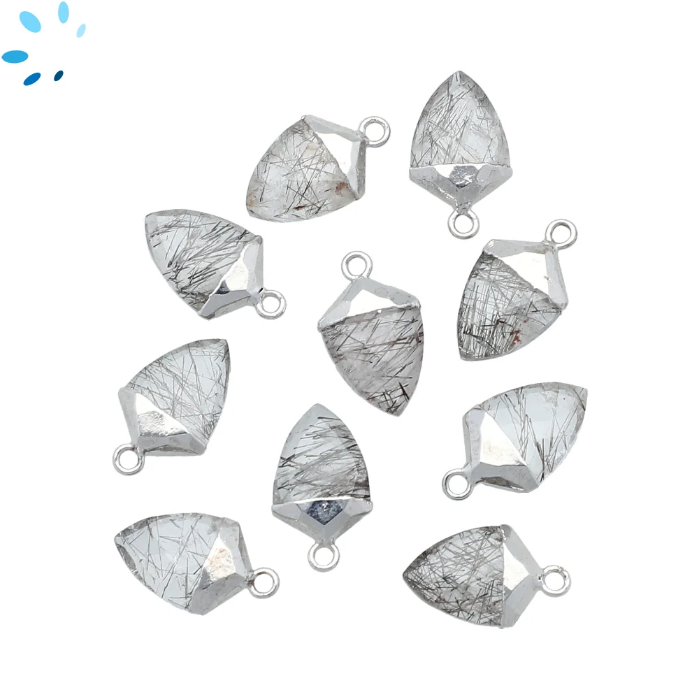 Tourmaline Quartz Shield Charm Pendant 14x12mm Silver Electroplated - Set of 4