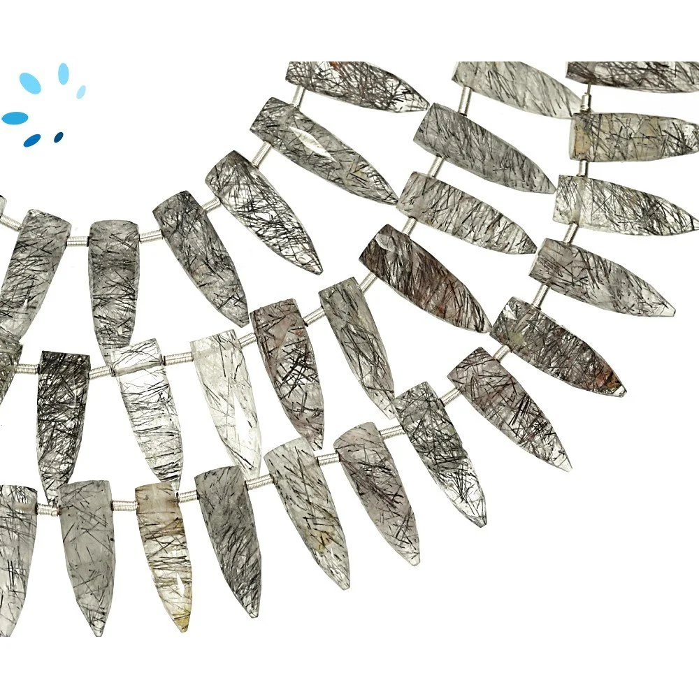 Tourmaline Quartz Faceted Spike Top Drilled Beads 15x5 - 17x6mm - 8 Inch Strand
