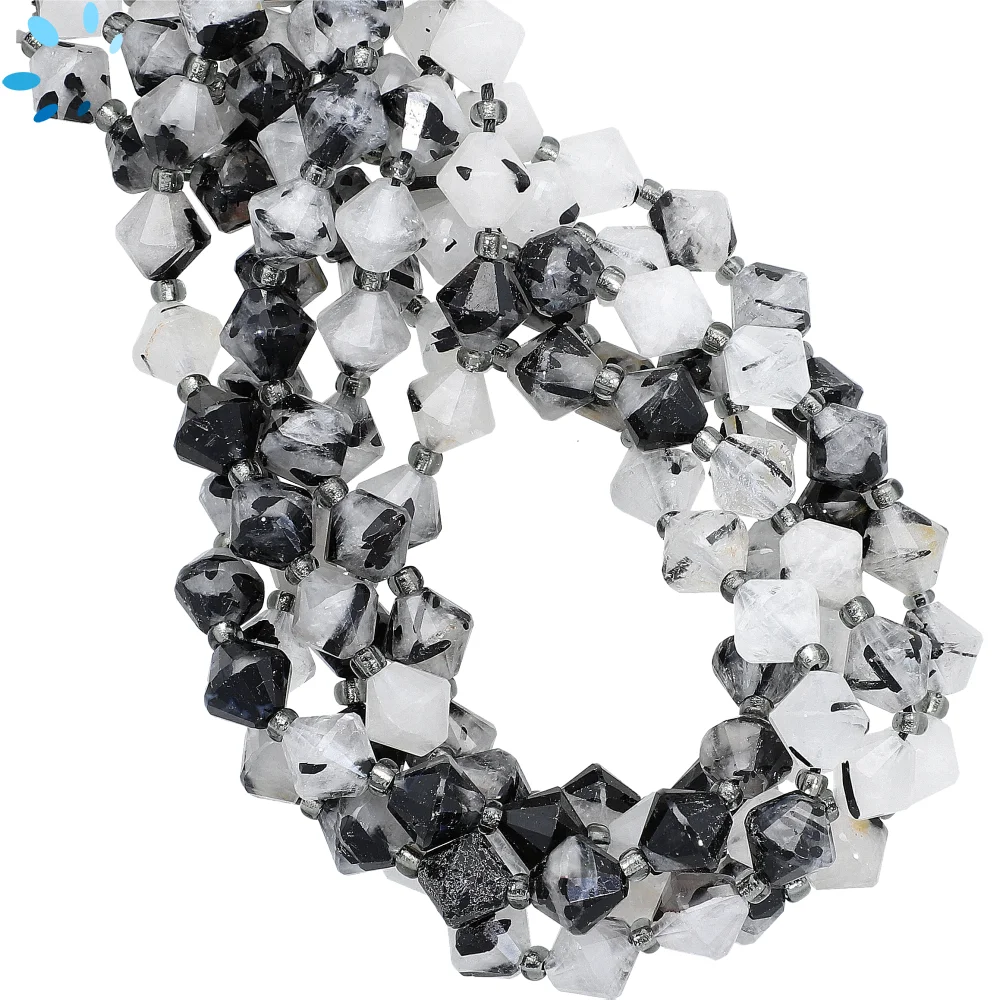 Tourmaline Quartz Faceted Nuggets Top to Bottom Drilled Beads 10x8 - 12x9mm - 13 Inch Strand