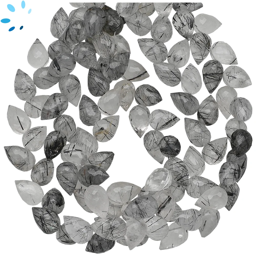 Tourmaline Quartz Faceted Teardrop Herringbone Drilled Beads 9x6mm - 8 Inch Strand