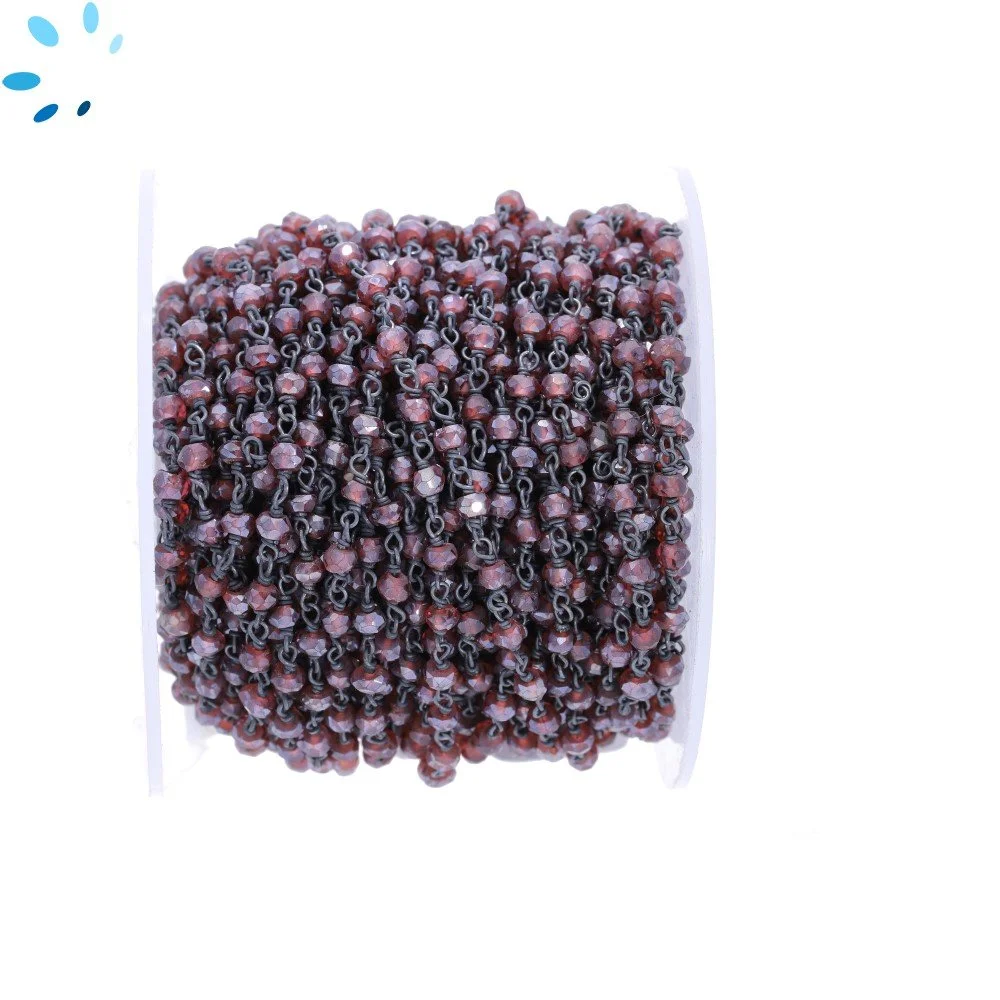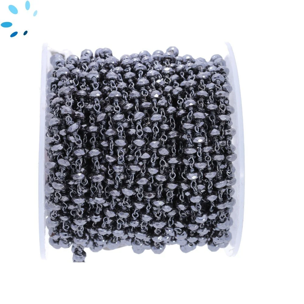 Hematine Faceted Button 4.0-4.5mm Sterling Silver Black Rhodium Plated Rosary Style Beaded Chain Per Foot