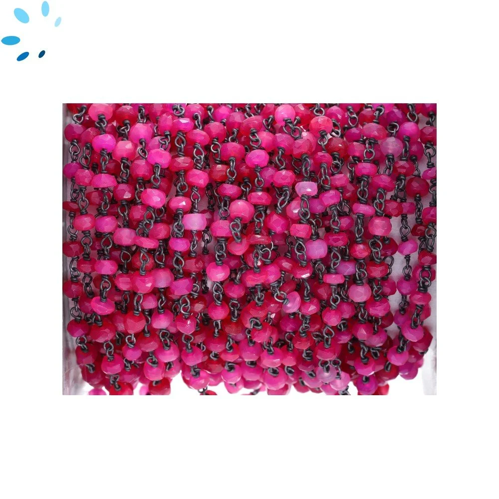 Fuchsia Chalcedony Faceted Button 4.0 - 4.5 mm Sterling Silver Rosary Style Beaded Chain Per Foot-Black Rhodium Plated