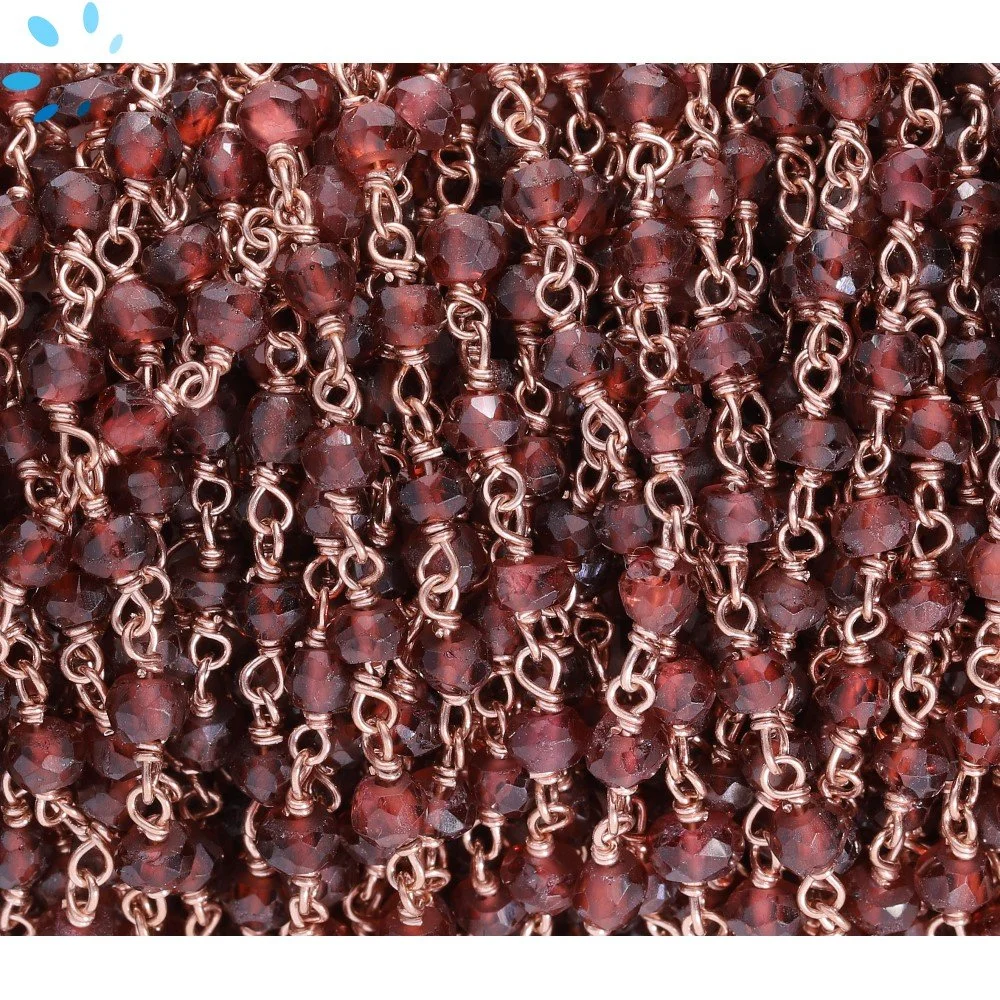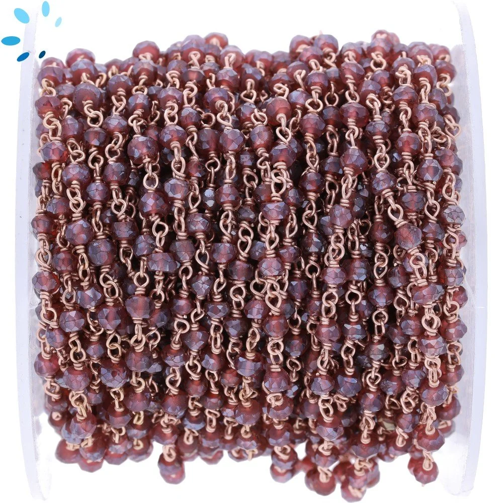 Garnet Faceted Button 3.5 mm Sterling Silver Rose Gold Plated Rosary Style Beaded Chain Per Foot-Rose Gold Plated