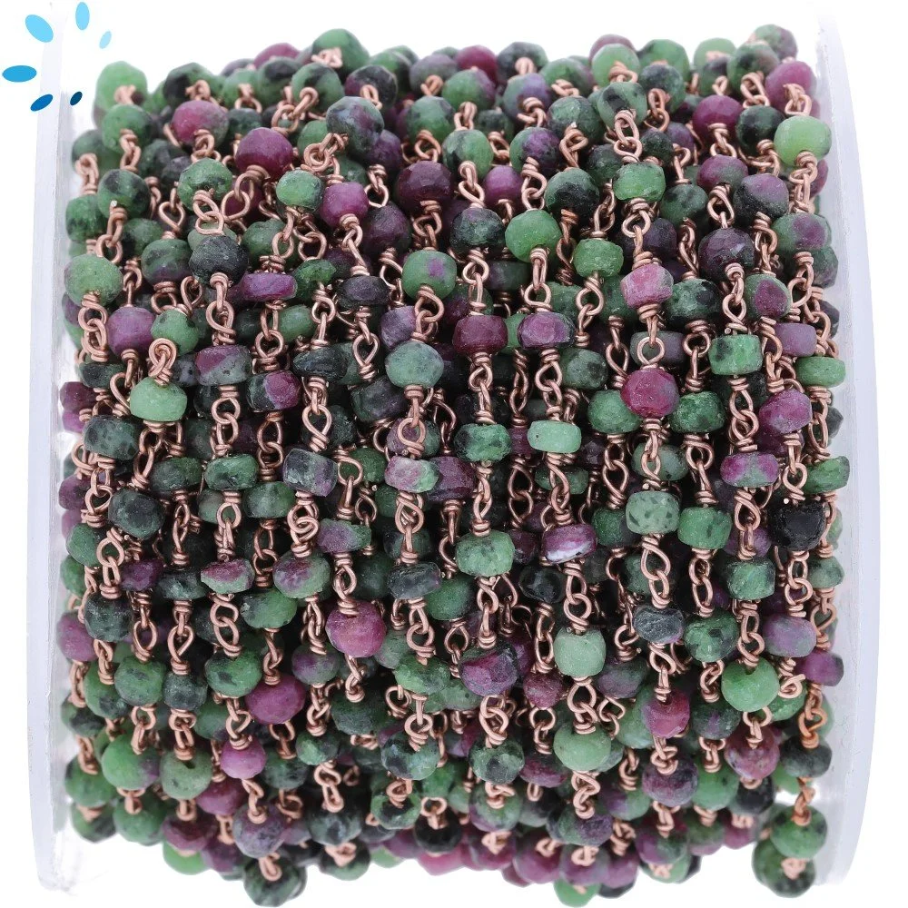 Ruby Zosite Faceted Button 3.5-4.5mm Sterling Silver Rose Gold Plated Rosary Style Beaded Chain Per Foot-Rose Gold Plated