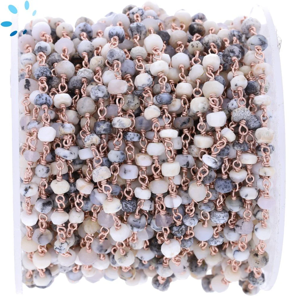 Dendrite Opal Faceted Button 4.0 - 4.5mm Sterling Silver Rose Gold Plated Rosary Style Beaded Chain Per Foot
