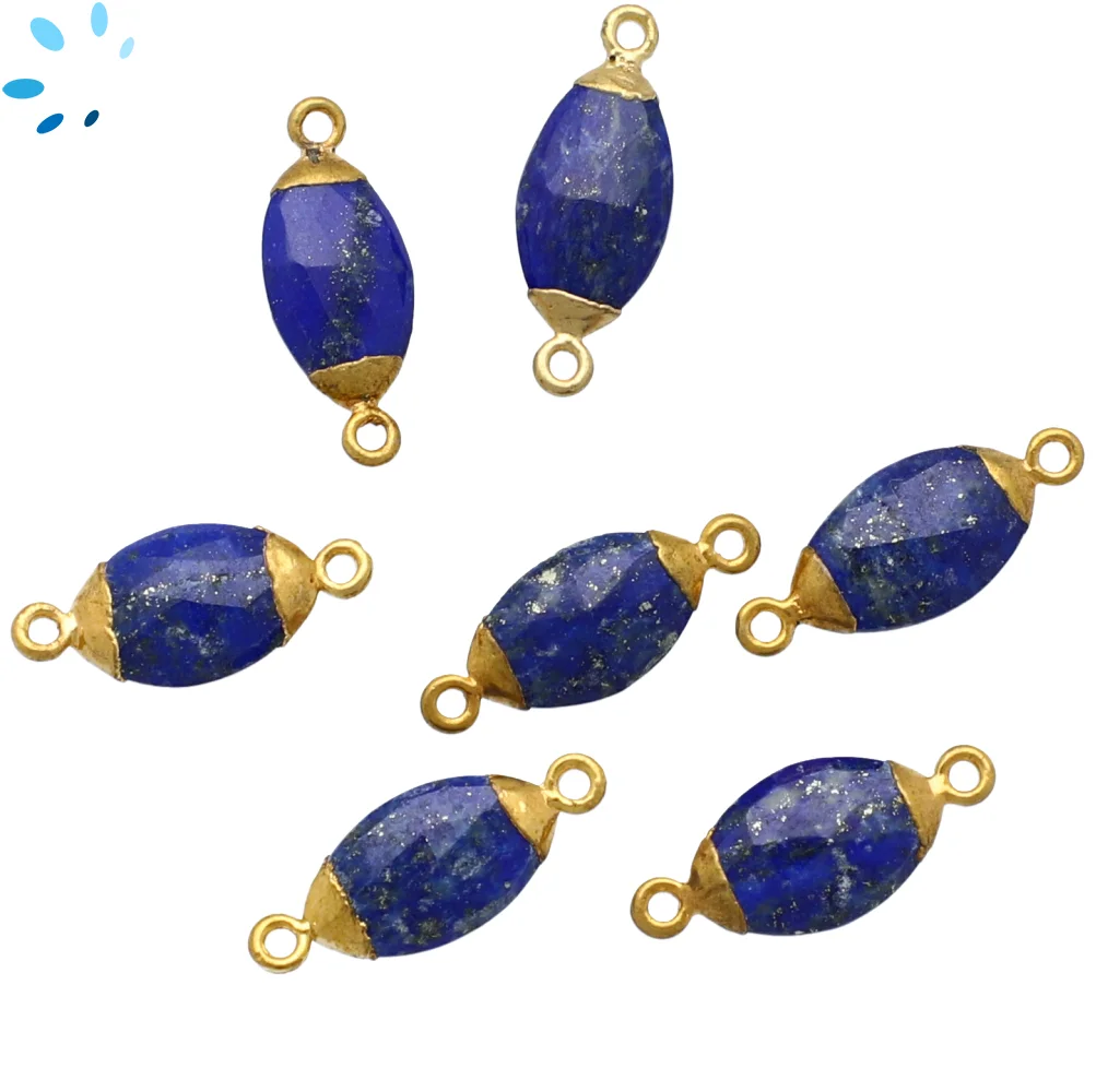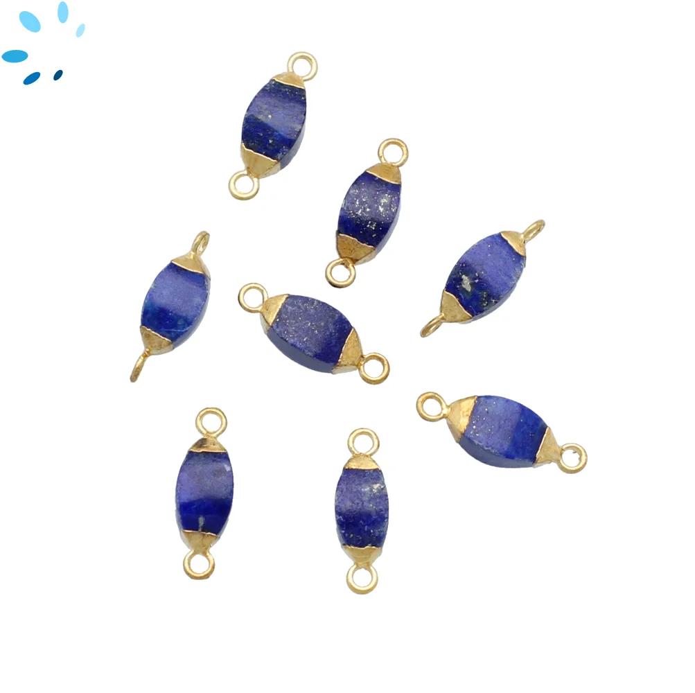 Lapis Marquise Connector 14x7 - 16x9mm 18k Gold Electroplated - Set of 4