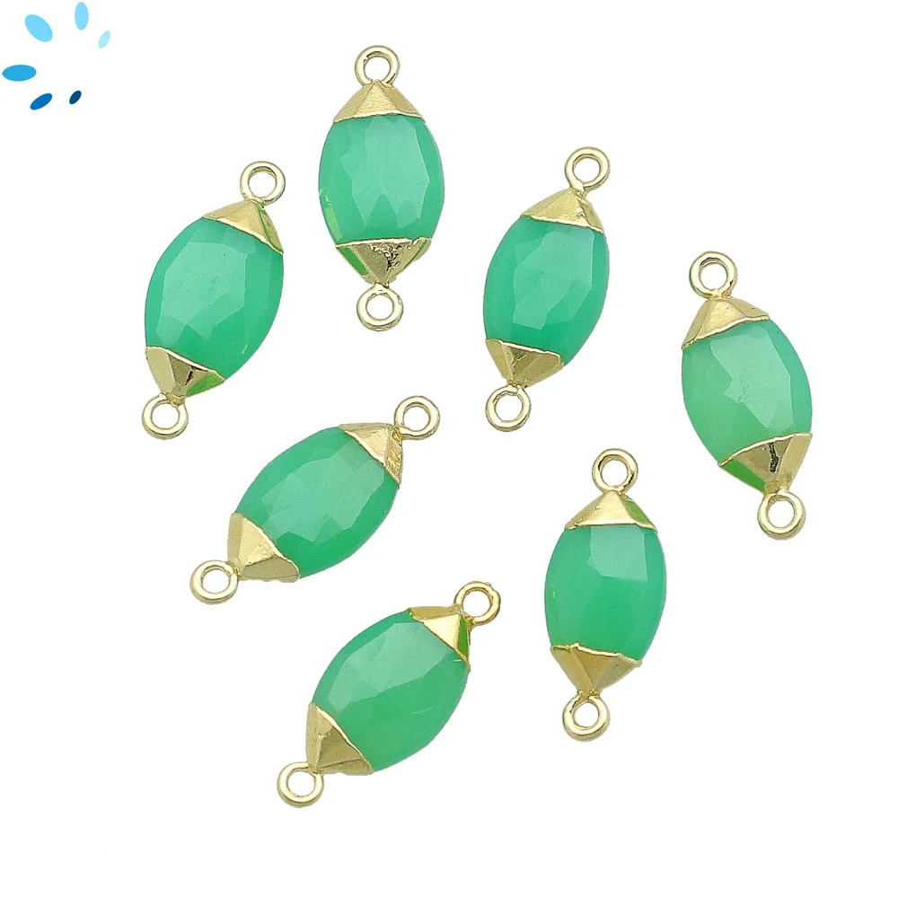 Chrysoprase Chalcedony Marquise Connector 14x7 - 16x9mm 18k Gold Electroplated - Set of 4