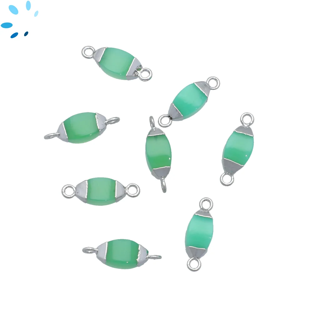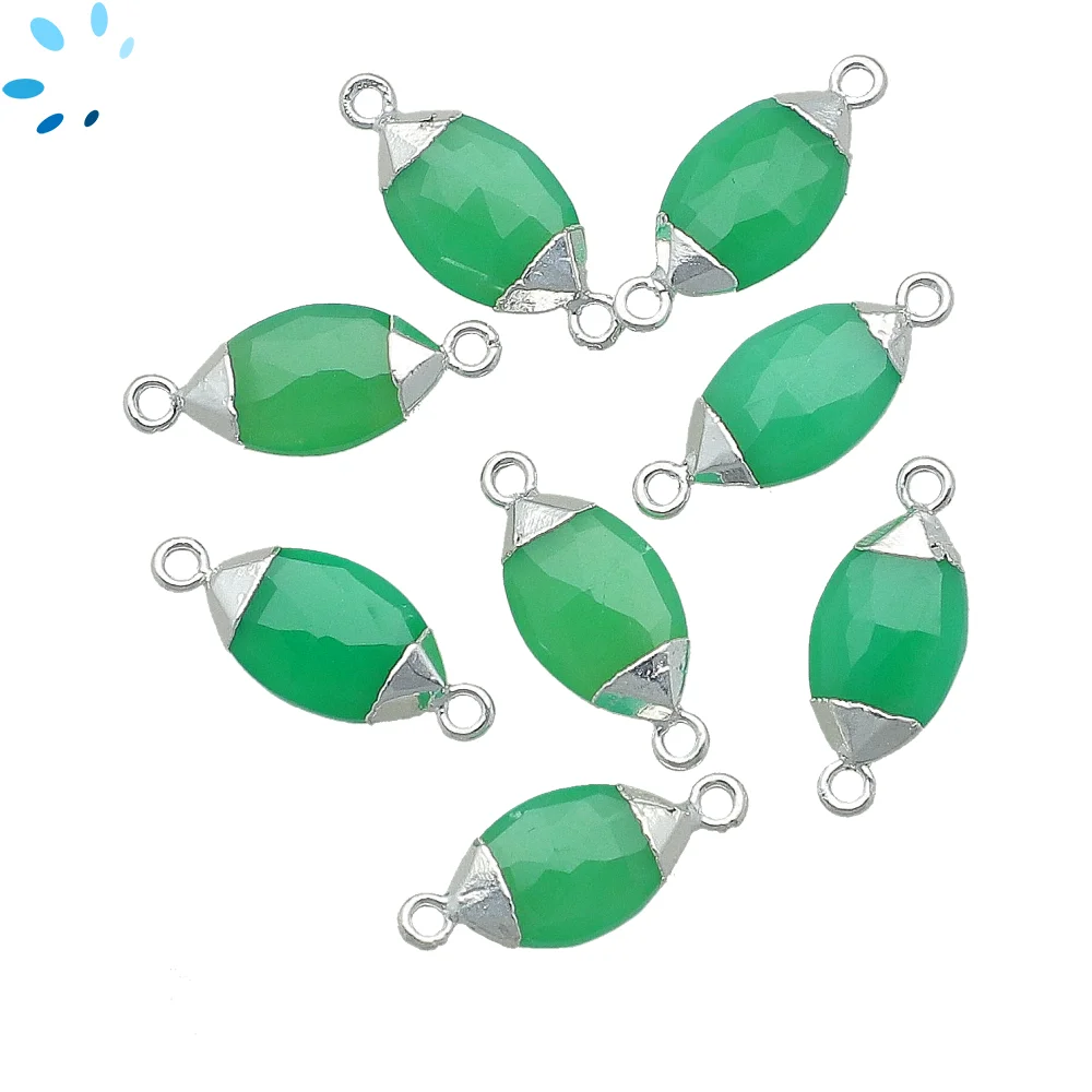 Chrysoprase Chalcedony Marquise Connector 14x7 - 16x9mm Silver Electroplated - Set of 4