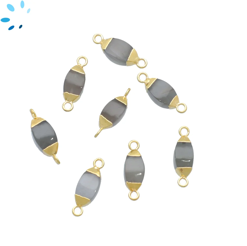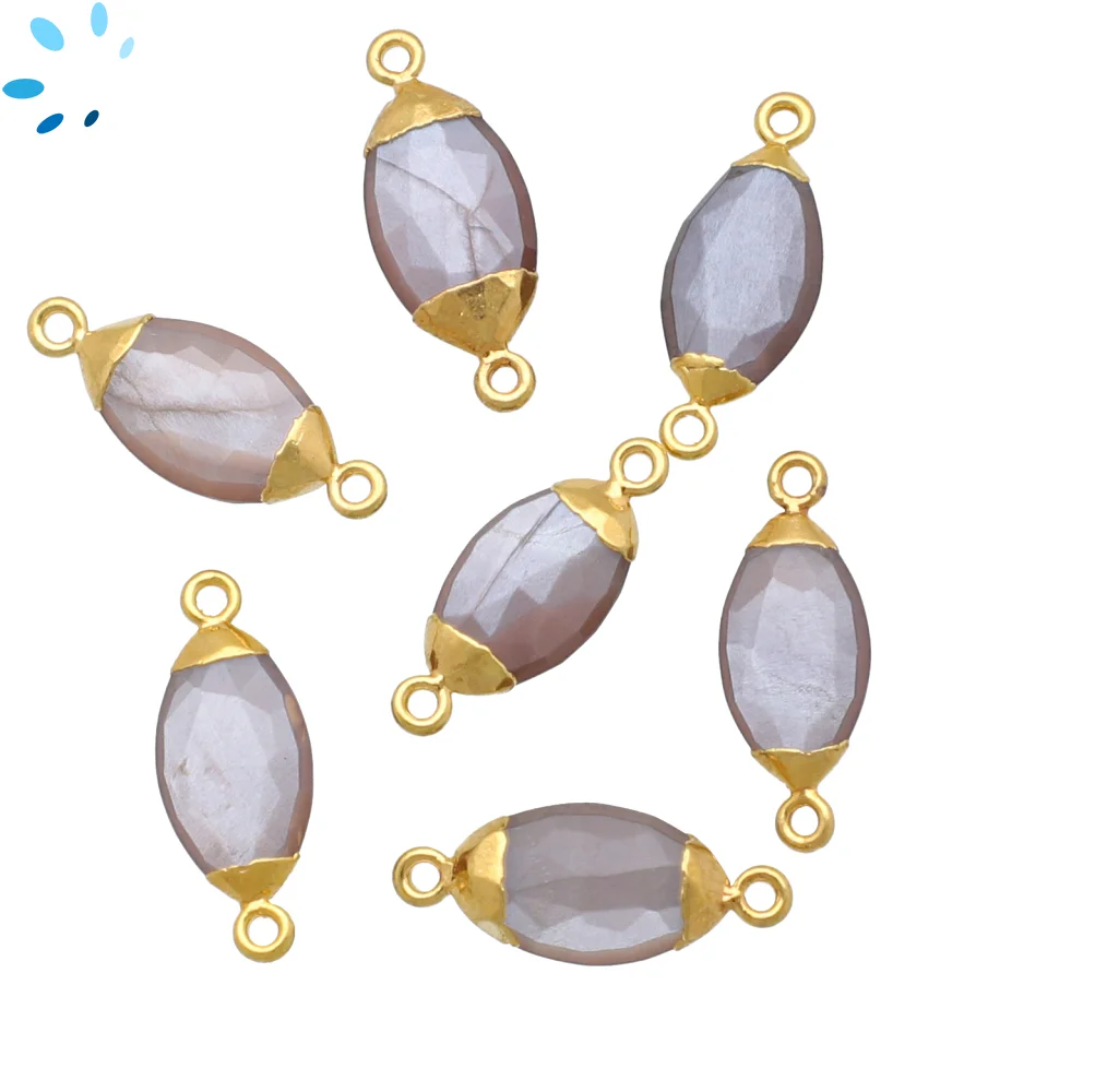 Gray Moonstone Marquise Connector 10x5mm - 14x6mm 18kGold Electroplated - Set of 4