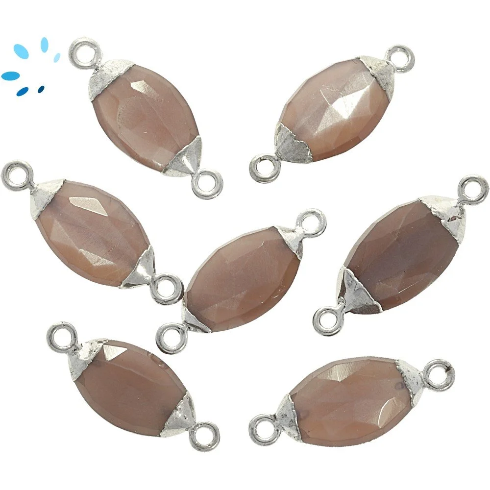 Chocolate Moonstone Marquise Connector 14x7 - 16x9mm Platinum Electroplated - Set of 4