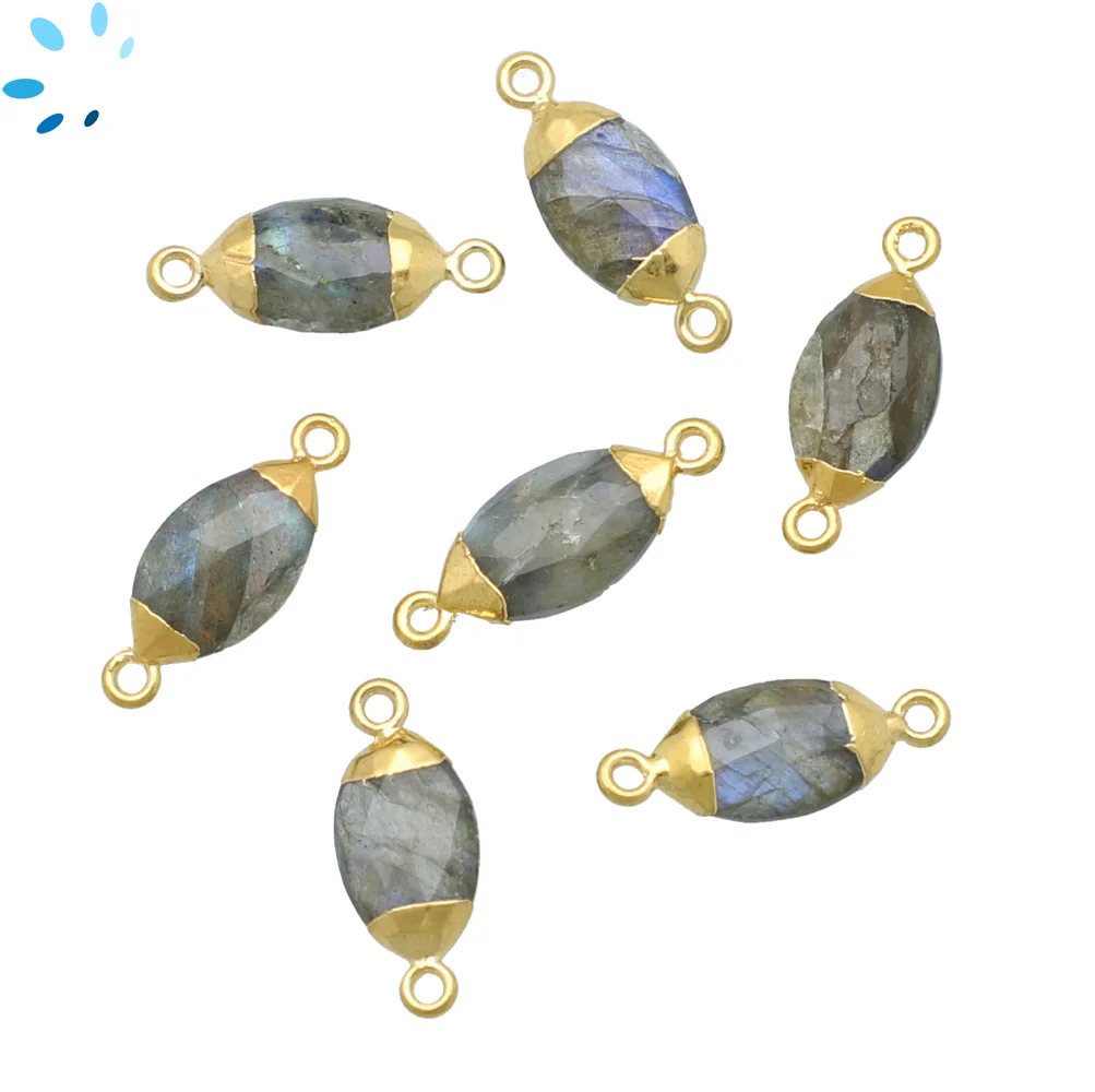 Labradorite Marquise Connector 14x7 - 16x9mm 18k Gold Electroplated - Set of 4