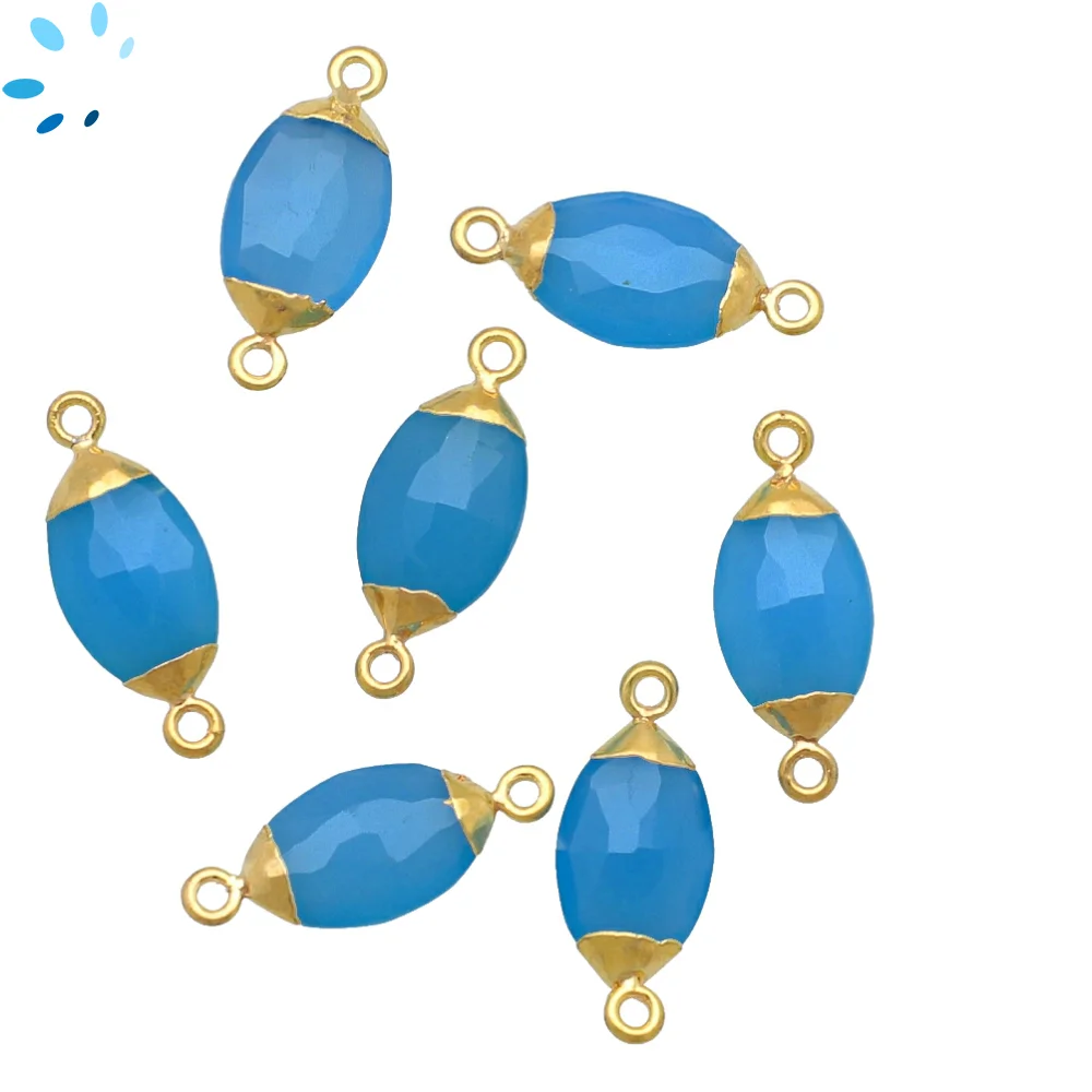 Blue Chalcedony Marquise Connector 14x7 - 16x9mm 18k Gold Electroplated - Set of 4