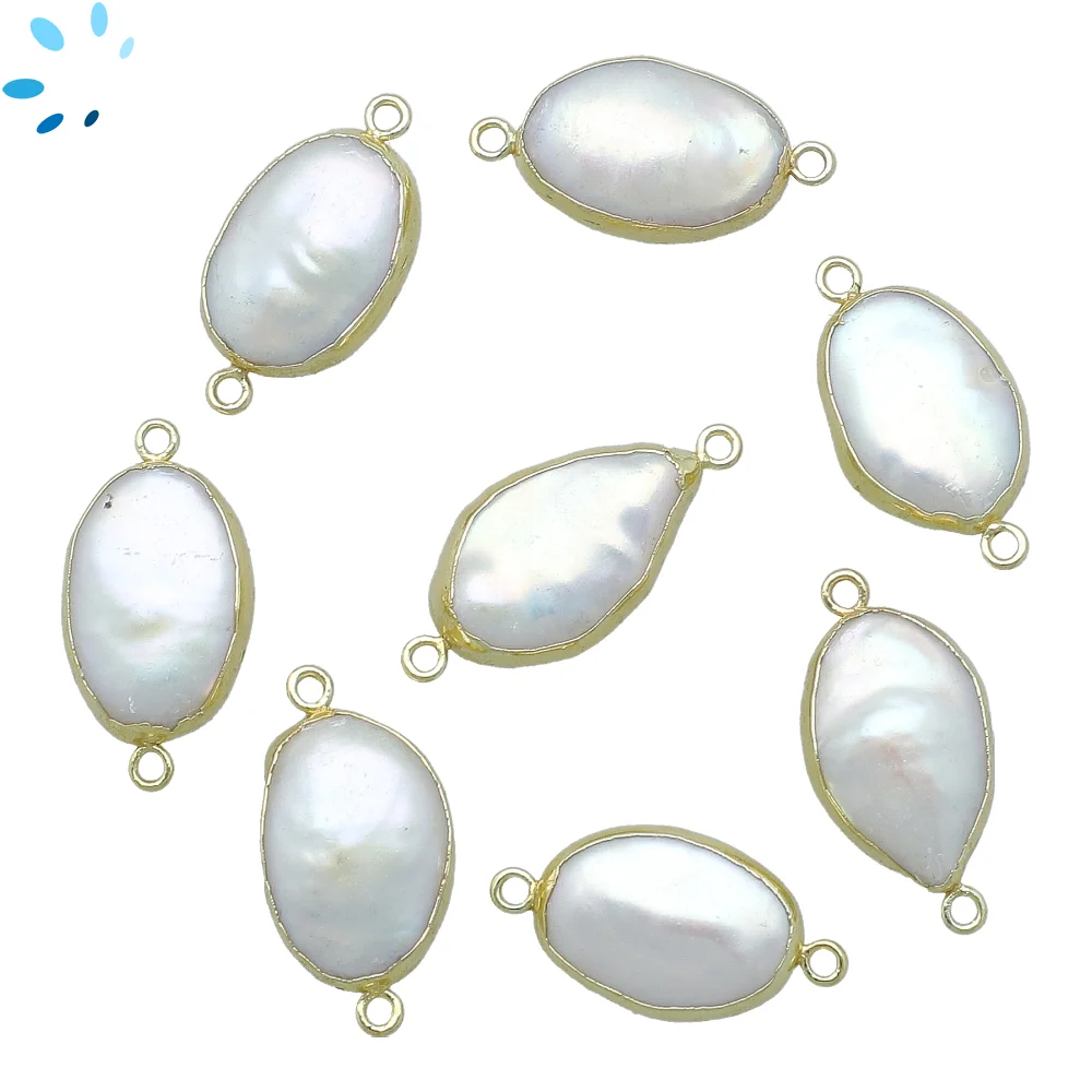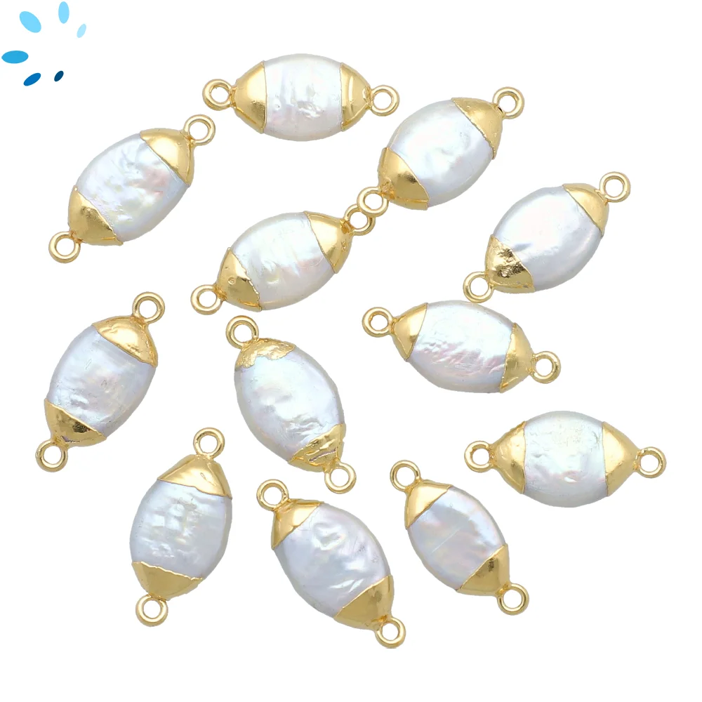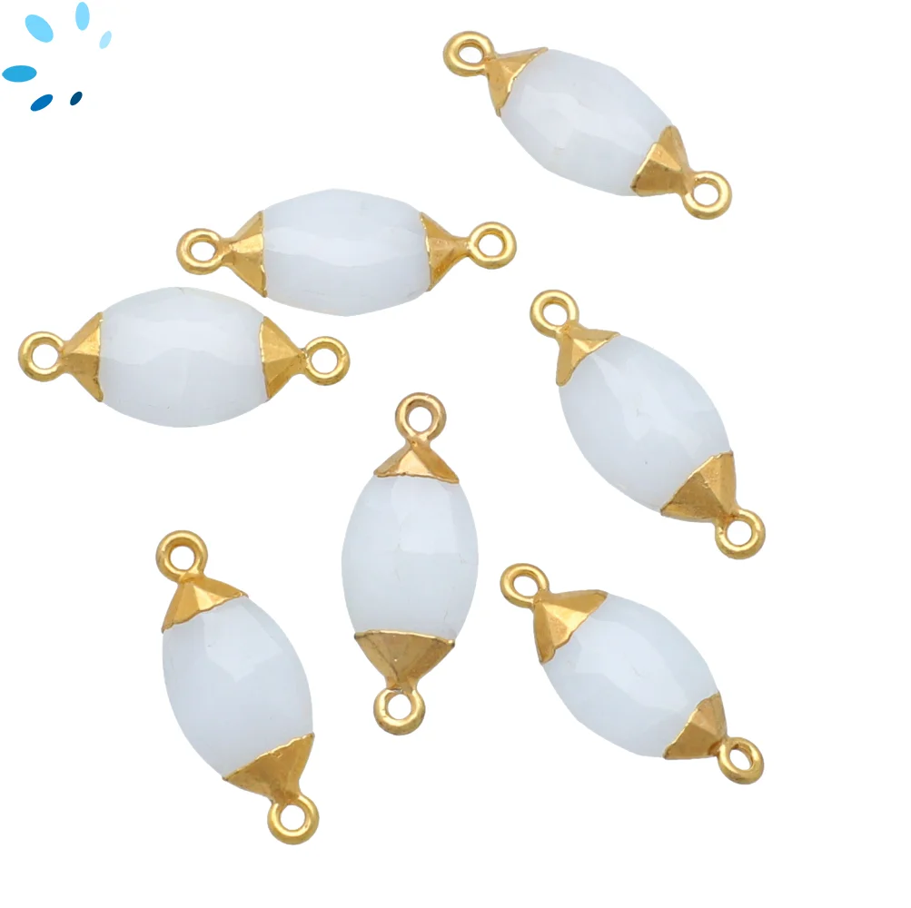 White Quartz Marquise Connector 14x7 - 16x9mm 18k Gold Electroplated - Set of 4