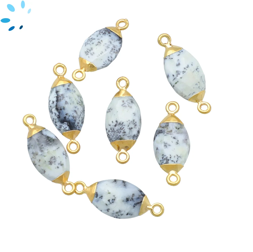 Dendrite Opal Marquise Connector 14x7 - 16x9mm 18k Gold Electroplated - Set of 4