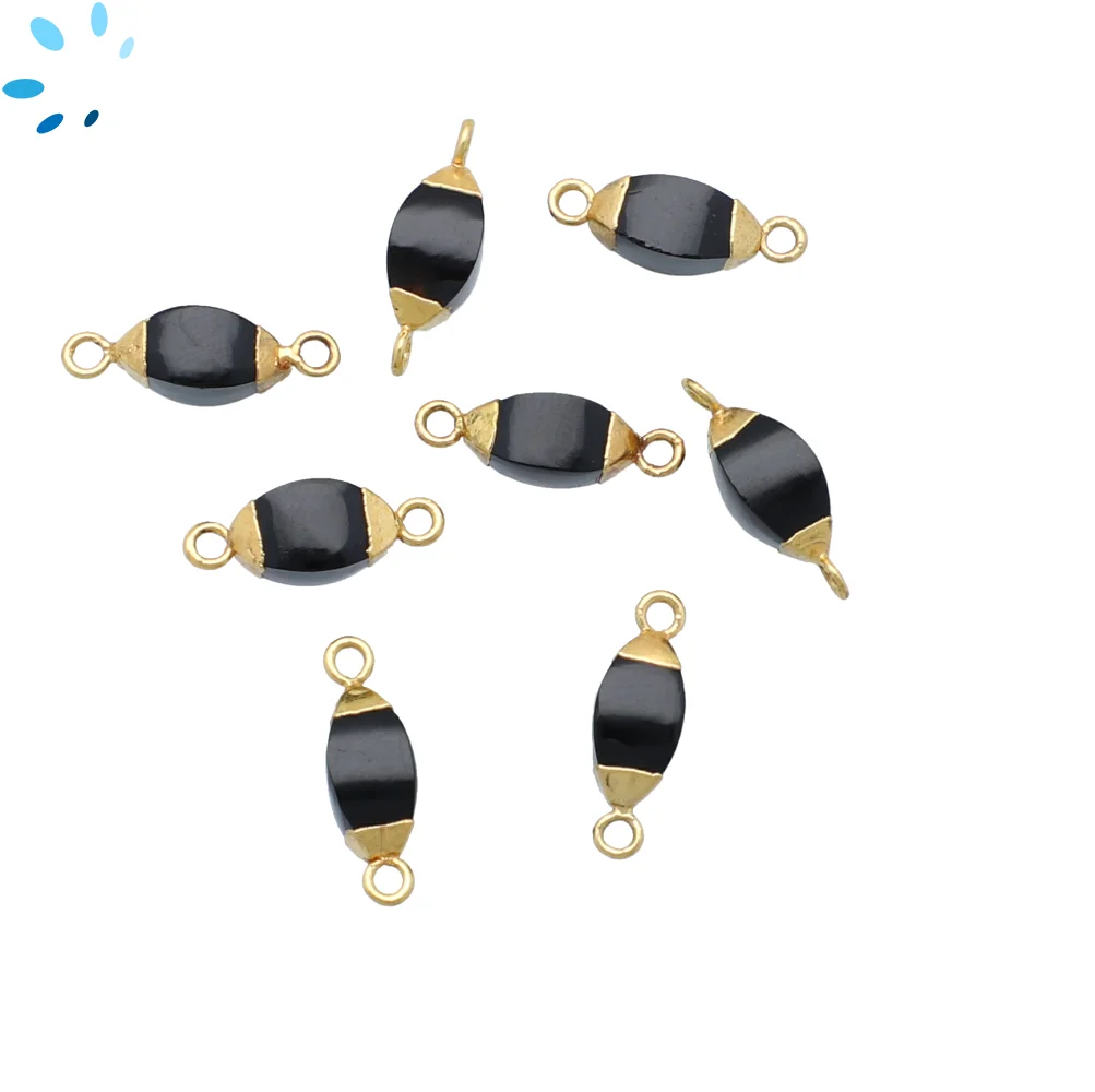 Black Onyx Marquise Connector 10x5mm - 14x6mm 18kGold Electroplated - Set of 4