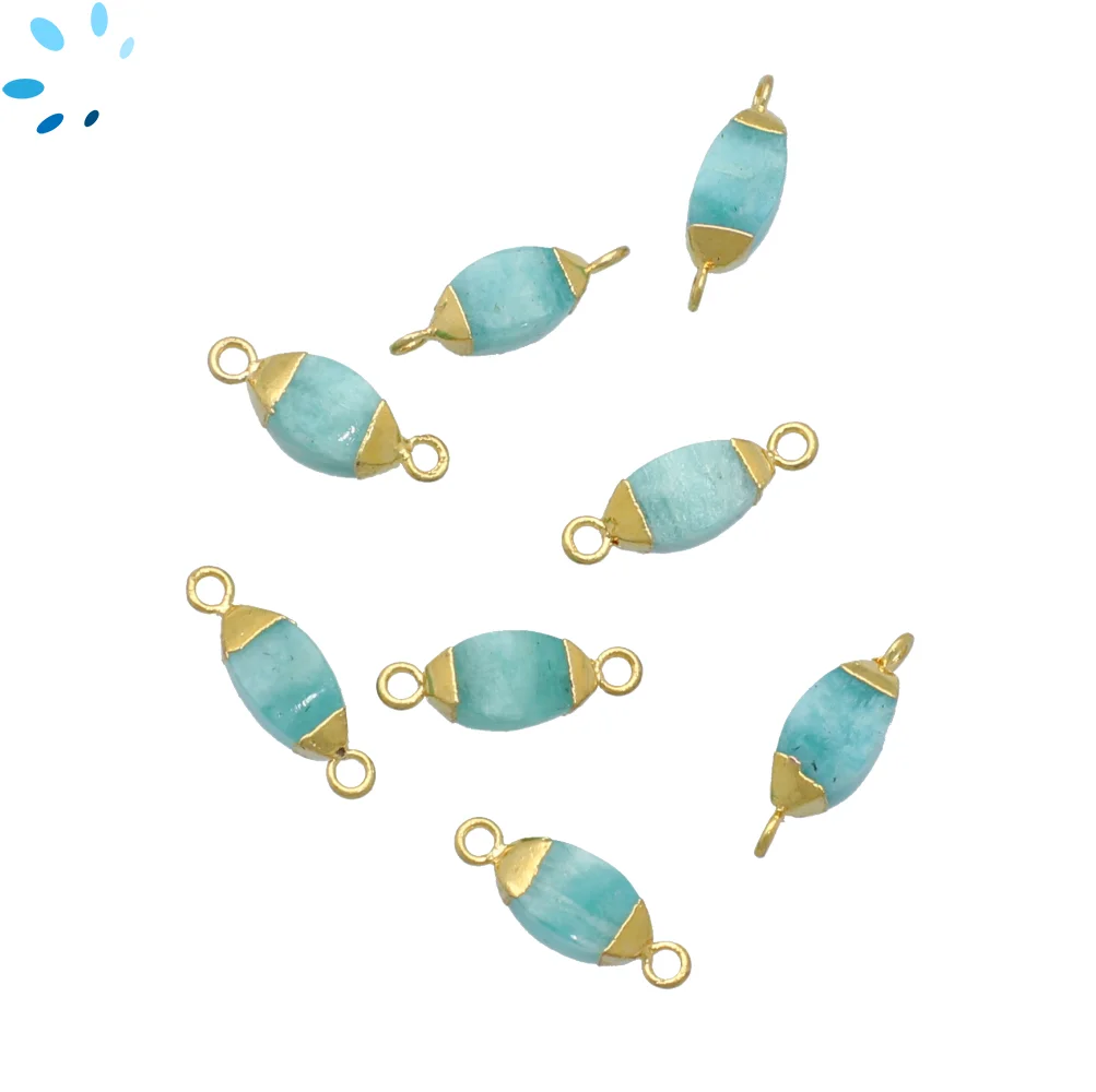 Amazonite Marquise Connector 10x5mm - 14x6mm 18kGold Electroplated - Set of 4