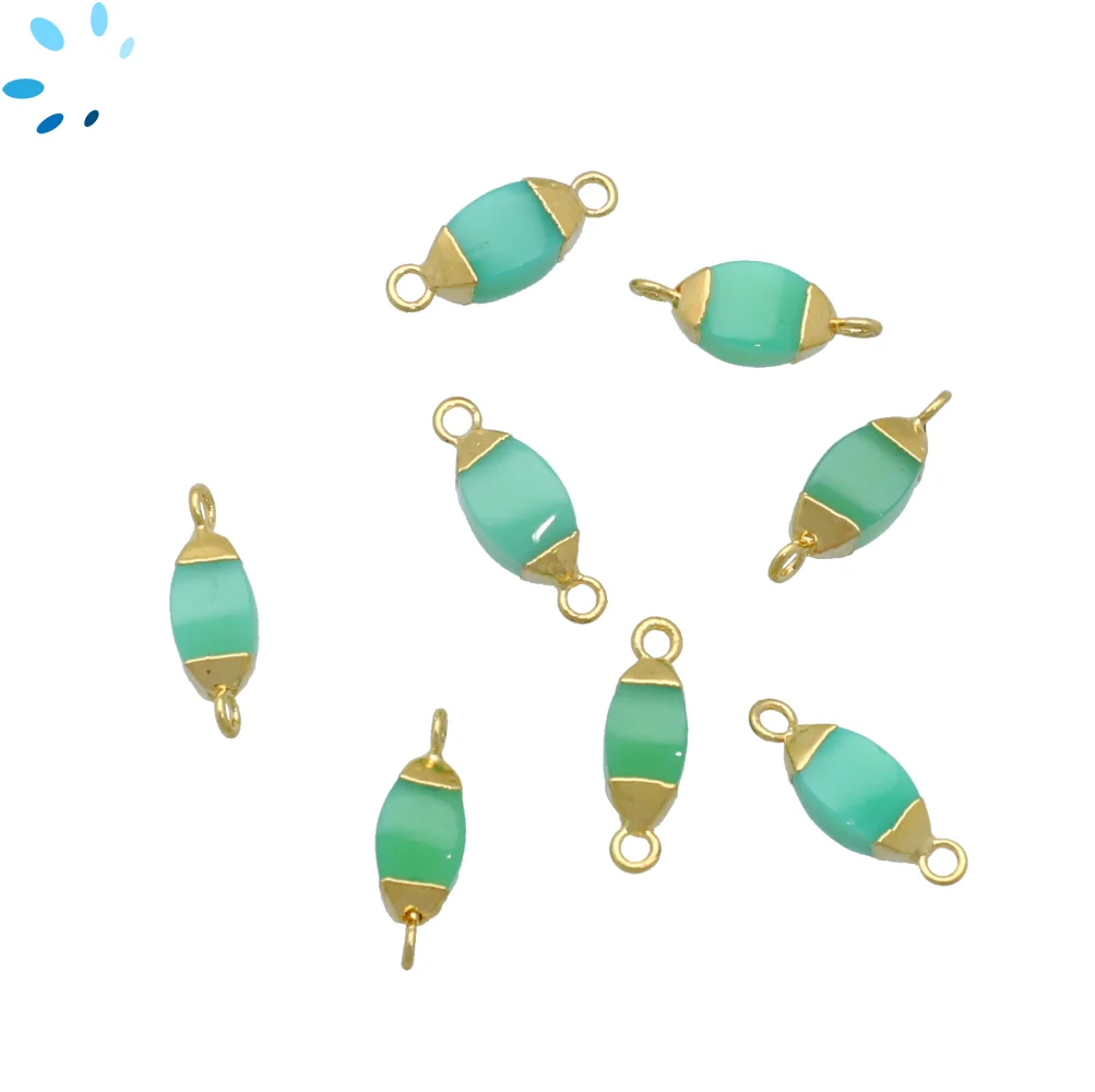 Chrysoprase Chalcedony Marquise Connector 10x5mm - 14x6mm 18kGold Electroplated - Set of 4