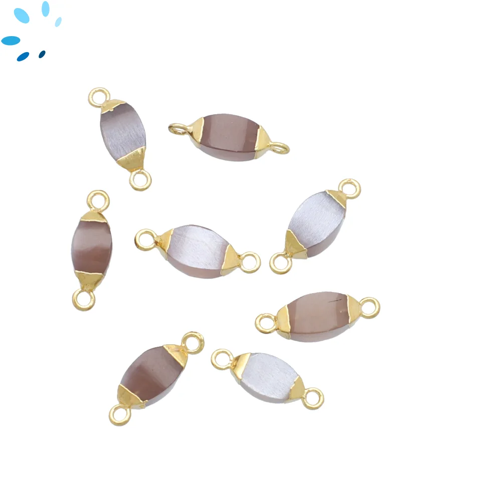 Chocolate Moonstone Marquise Connector 10x5mm - 14x6mm 18kGold Electroplated - Set of 4