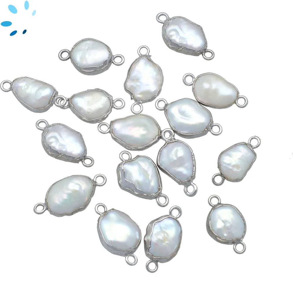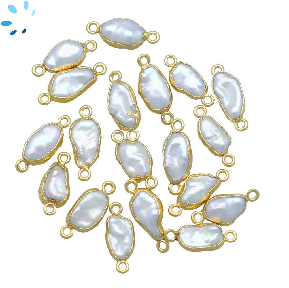 Mother of Pearls Rice Connector 15x6mm 18k Gold Electroplated - Set of 4