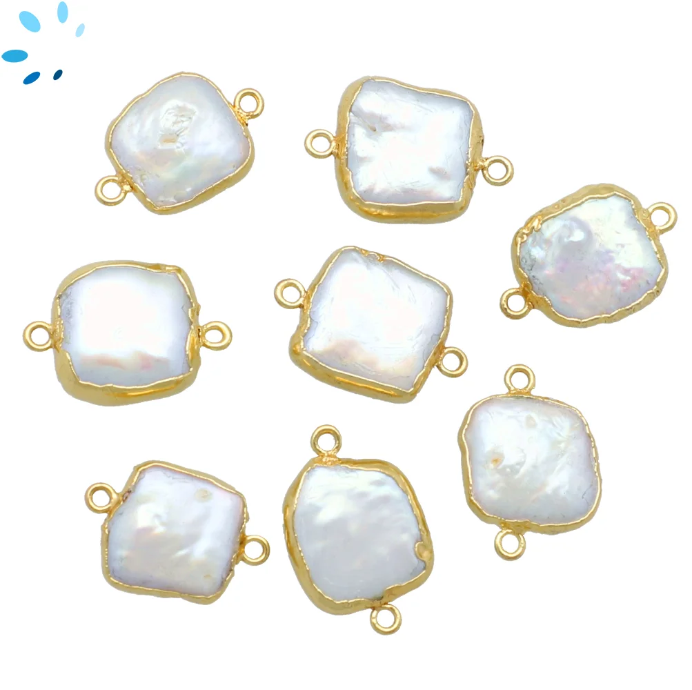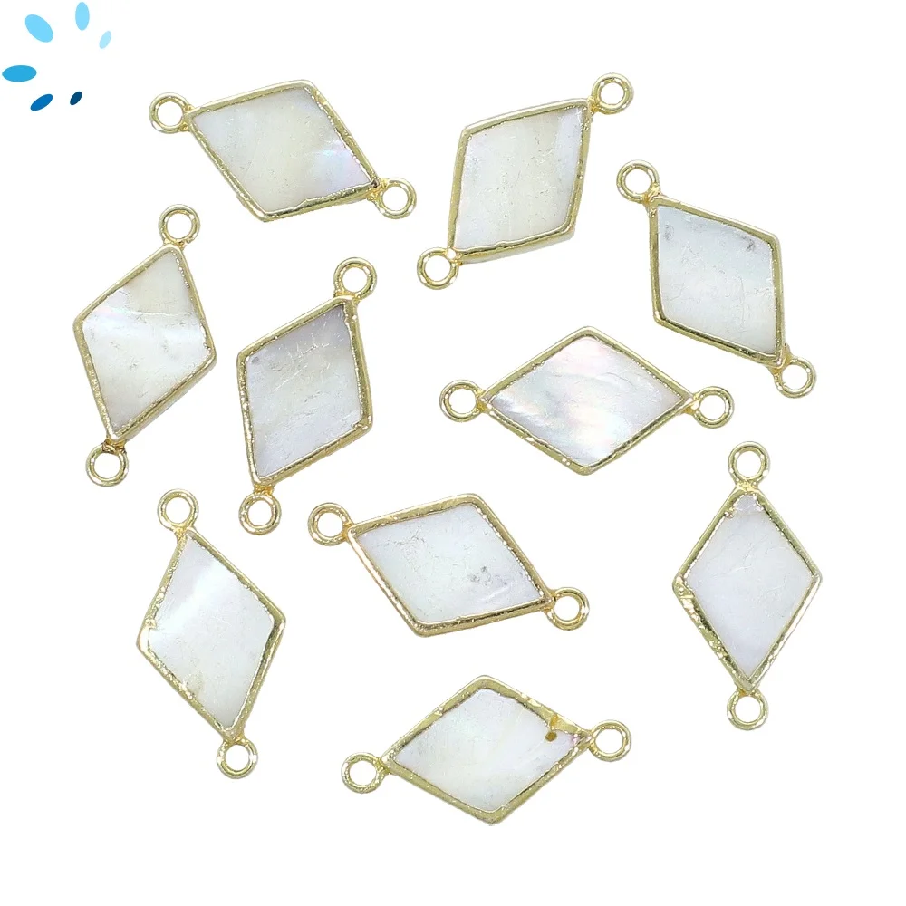 Mother of Pearls Diamond Connector 13x10mm 18k Gold Electroplated - Set of 4