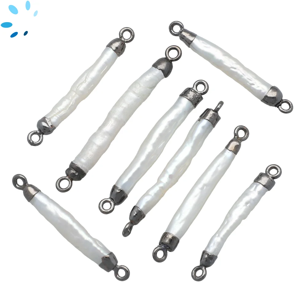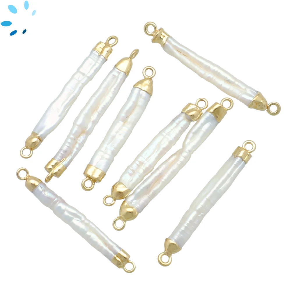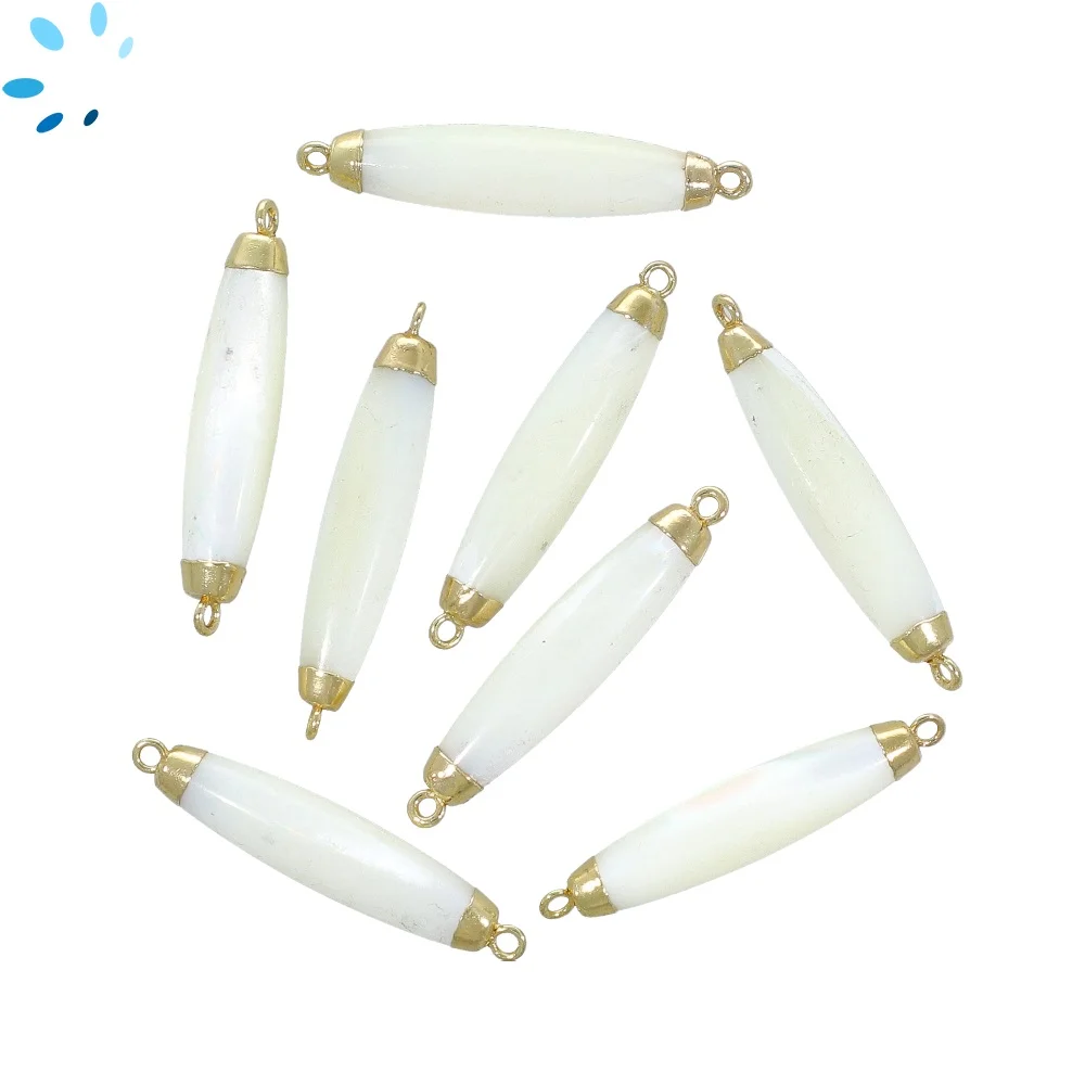 Mother of Pearls Rice Connector 30x7mm 18k Gold Electroplated - Set of 2