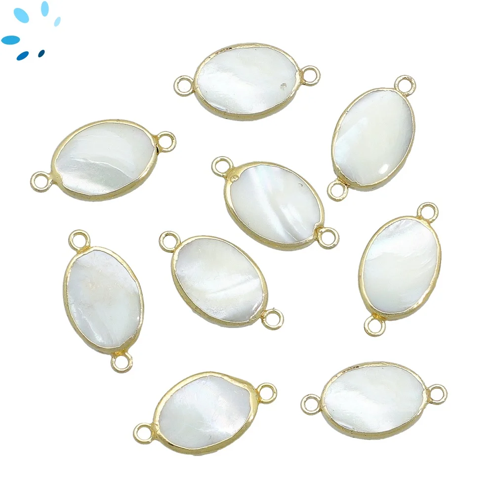 Mother of Pearls Oval Connector 14x10mm 18k Gold Electroplated - Set of 4