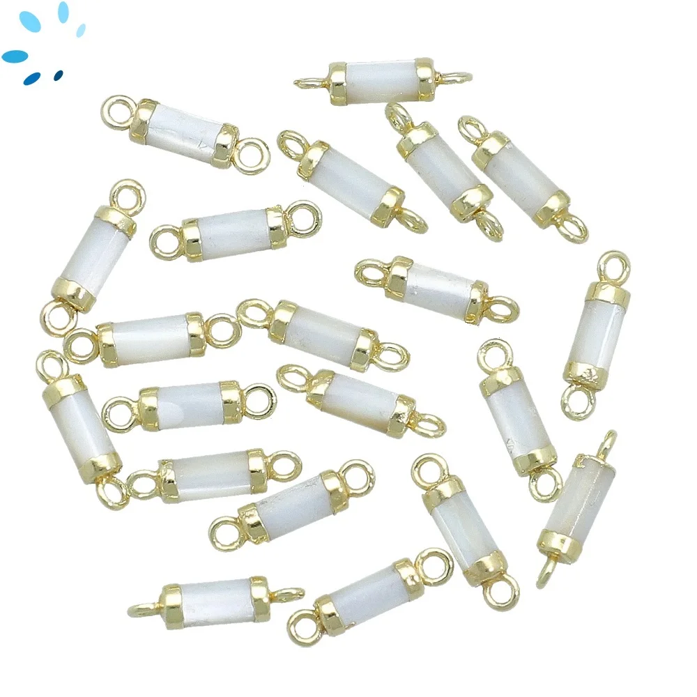 Mother of Pearls Barrel Connector 8x3mm 18k Gold Electroplated - Set of 4