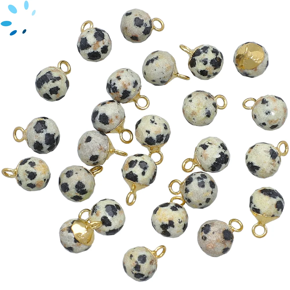 3. Dalmatian Jasper Berry Charm Pendant 7mm 18k Gold Electroplated - Set of 4