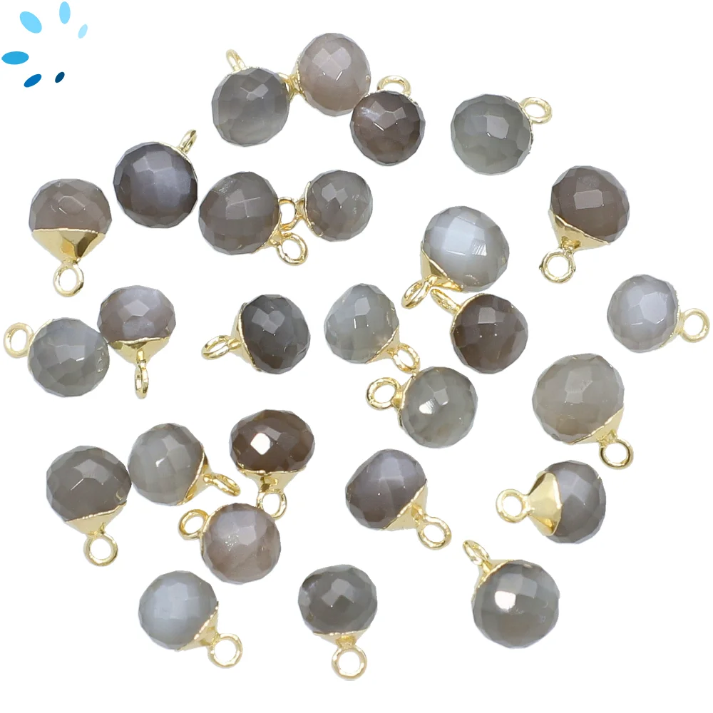 4. Gray Moonstone Berry Pendant Charm 7mm 18k Gold Electroplated - Set of 4