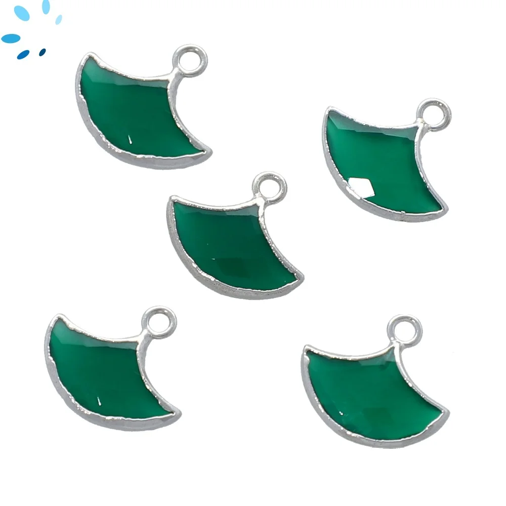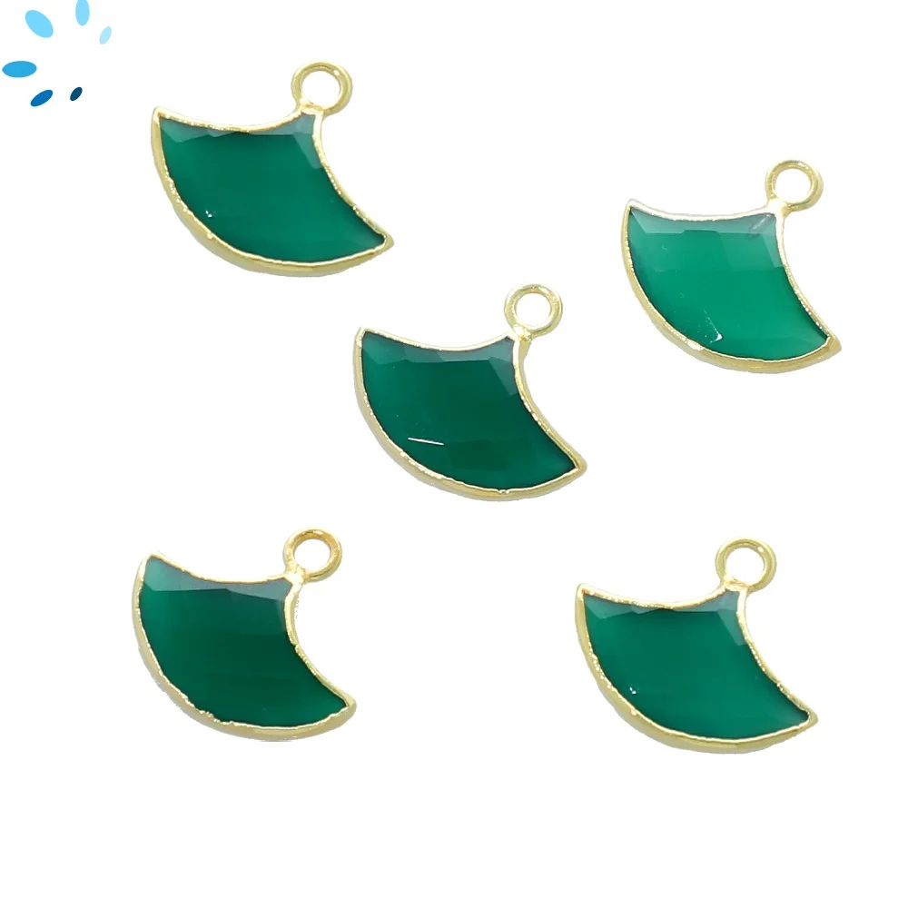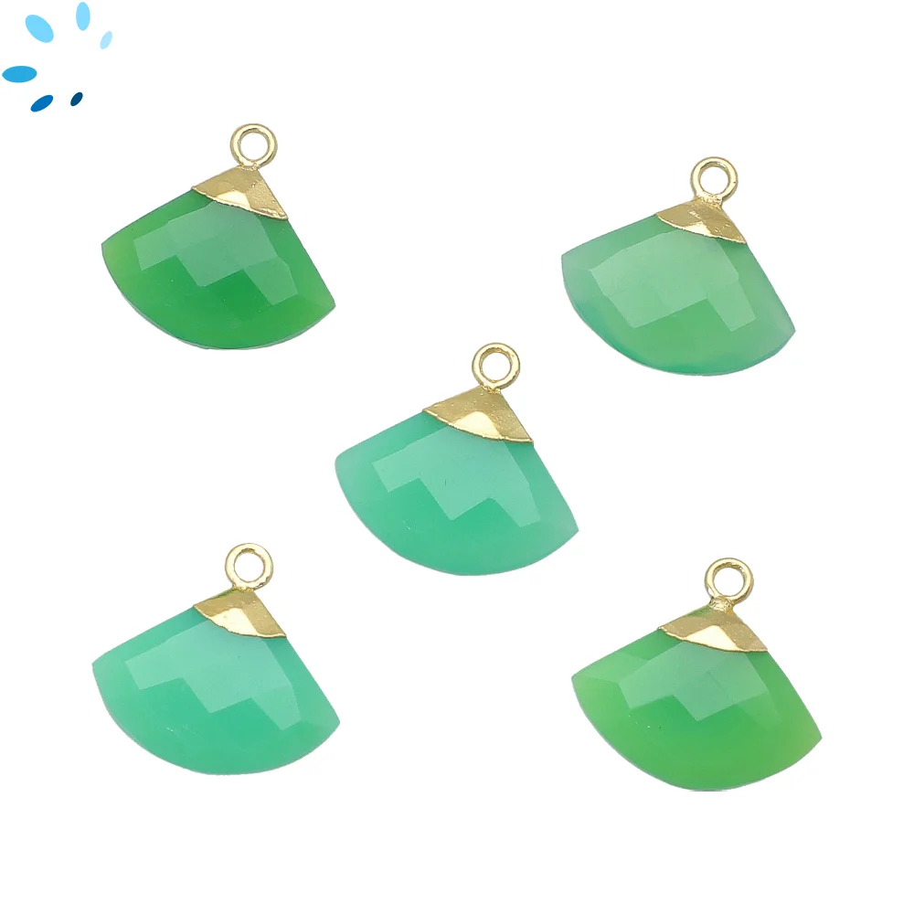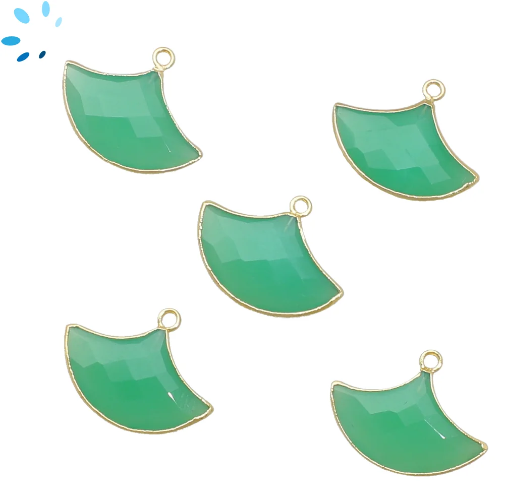Chrysoprase Chalcedony Fan Pendant Charm 16x13 - 18x14mm 18k Gold Electroplated - Set of 2