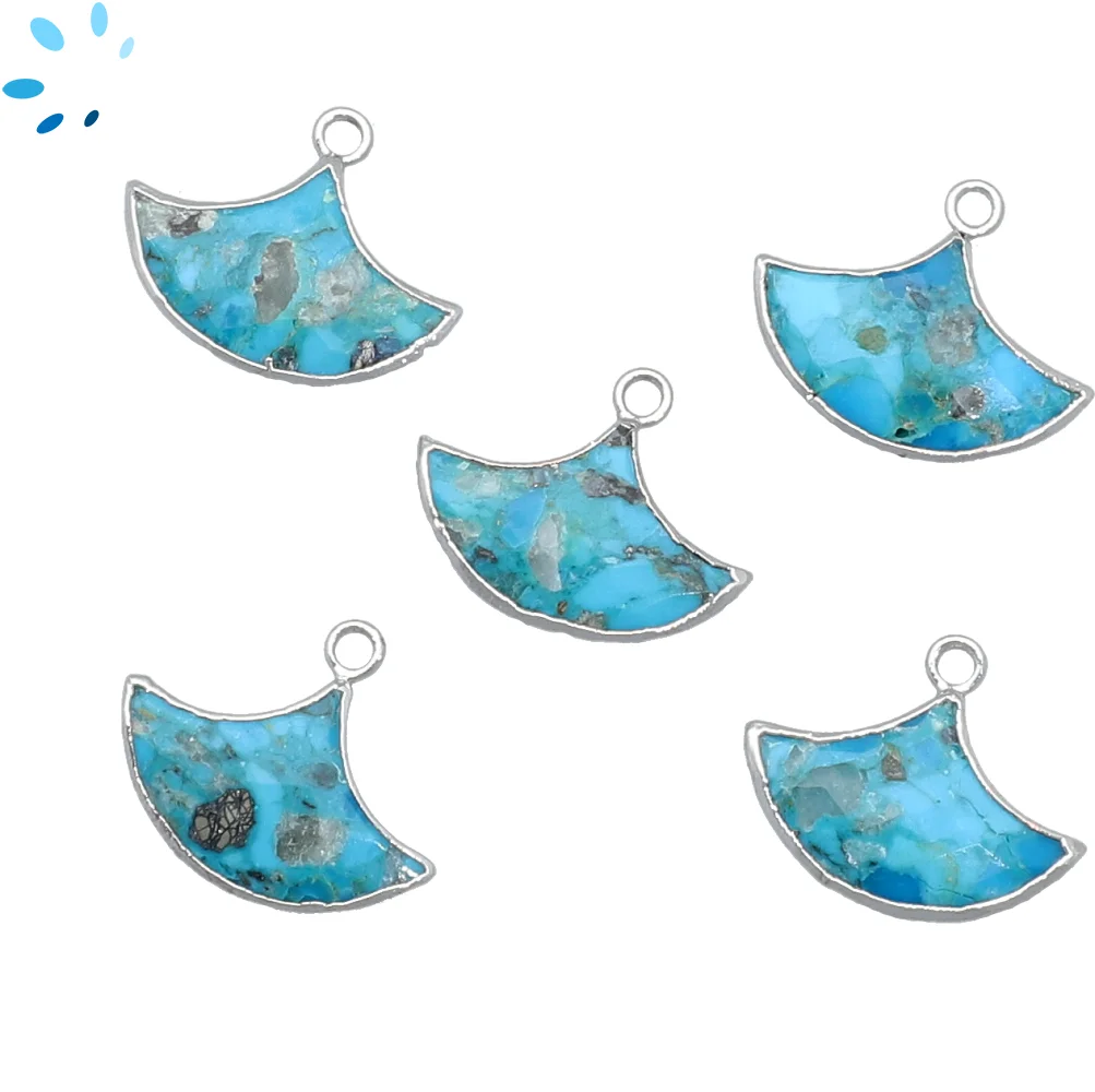Turquoise Fan Charm Pendant 20x13 - 23x15mm Platinum Electroplated - Set of 2