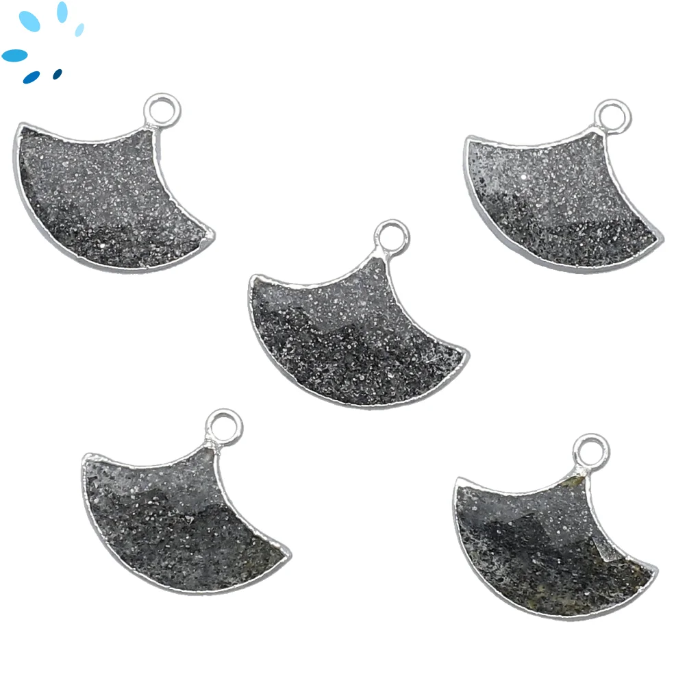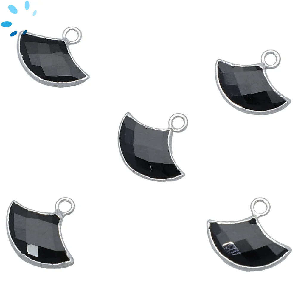 Black Sunstone Fan Pendant Charm 20x13 - 23x15mm Platinum Electroplated - Set of 2