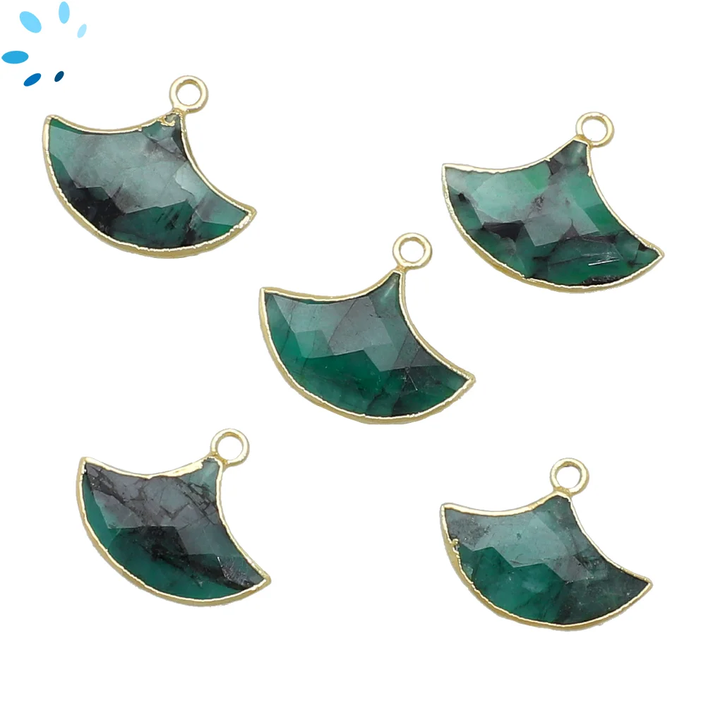 Raw Emerald Fan Charm Pendant 16x13 - 18x14mm 18k Gold Electroplated - Set of 2