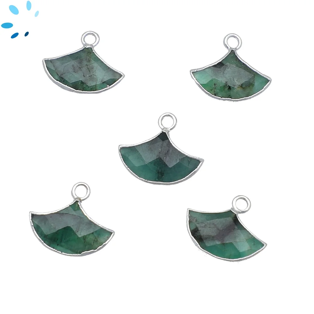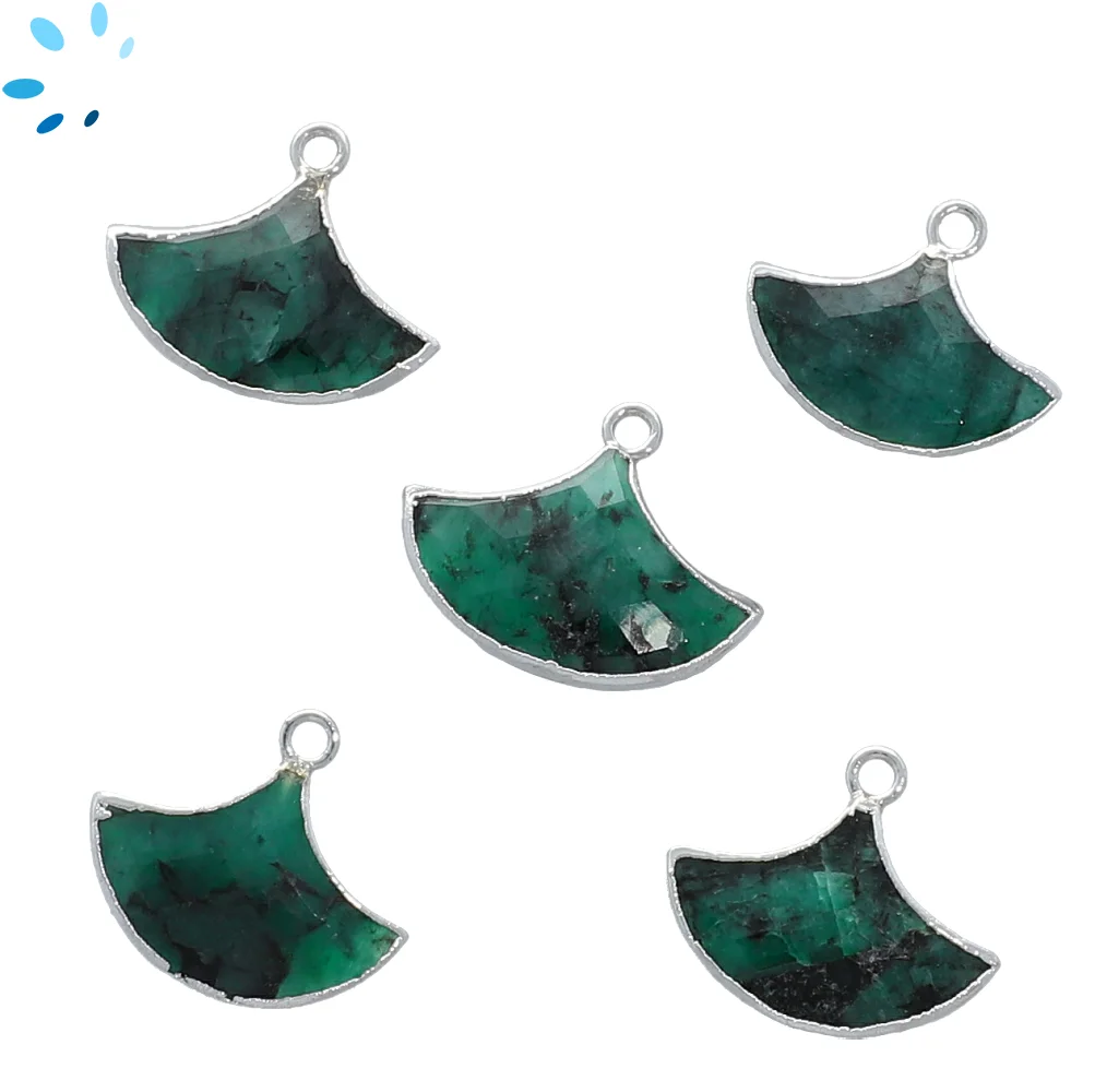 Raw Emerald Fan Pendant Charm 15x10 - 18x12mm Platinum Electroplated - Set of 2