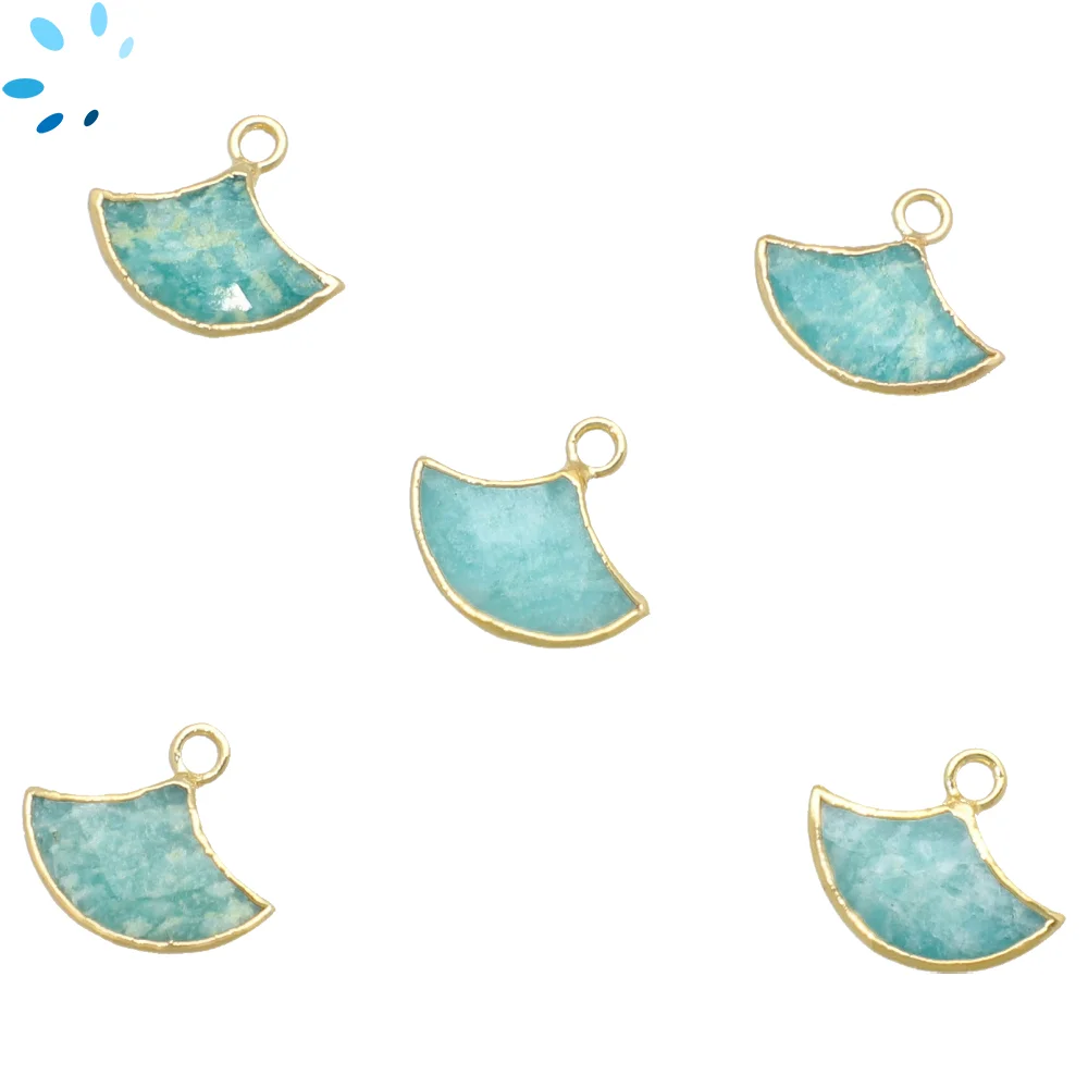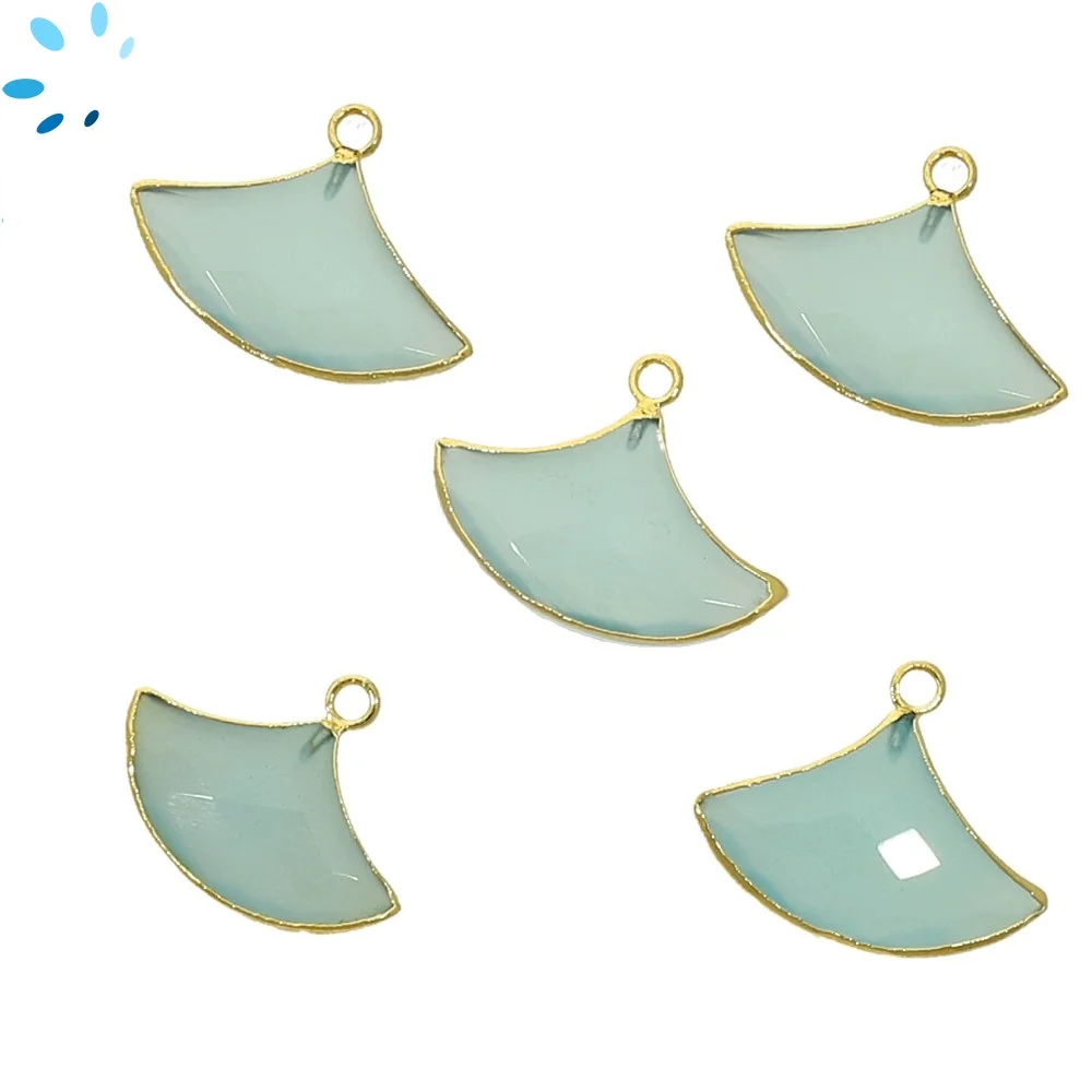 Aqua Chalcedony Fan Charm Pendant 15x10 - 18x12mm 18k Gold Electroplated - Set of 2