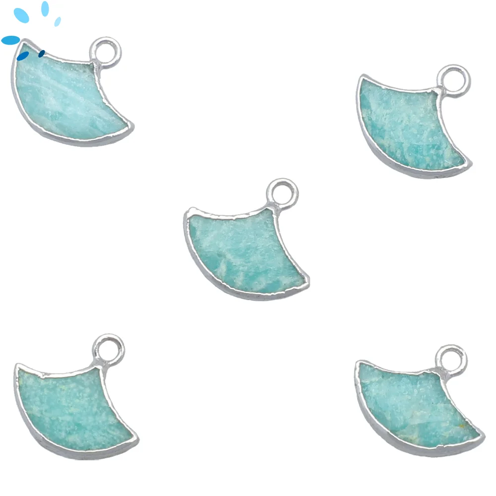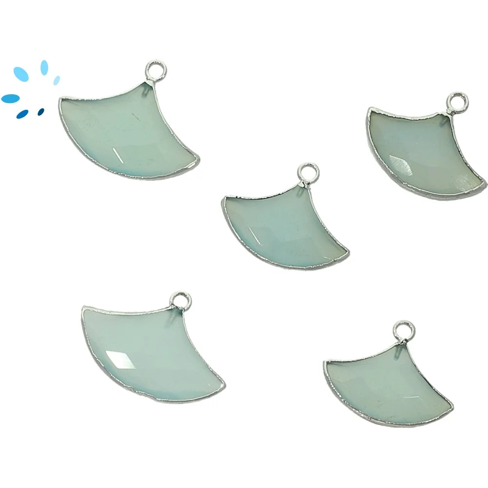 Aqua Chalcedony Fan Pendant Charm 15x10 - 18x12mm Platinum Electroplated - Set of 2
