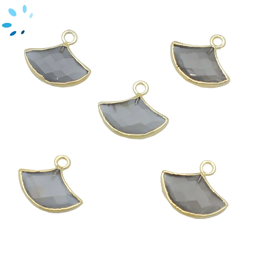 Gray Moonstone Fan Pendant Charm 15x10mm 18k Gold Electroplated - Set of 2