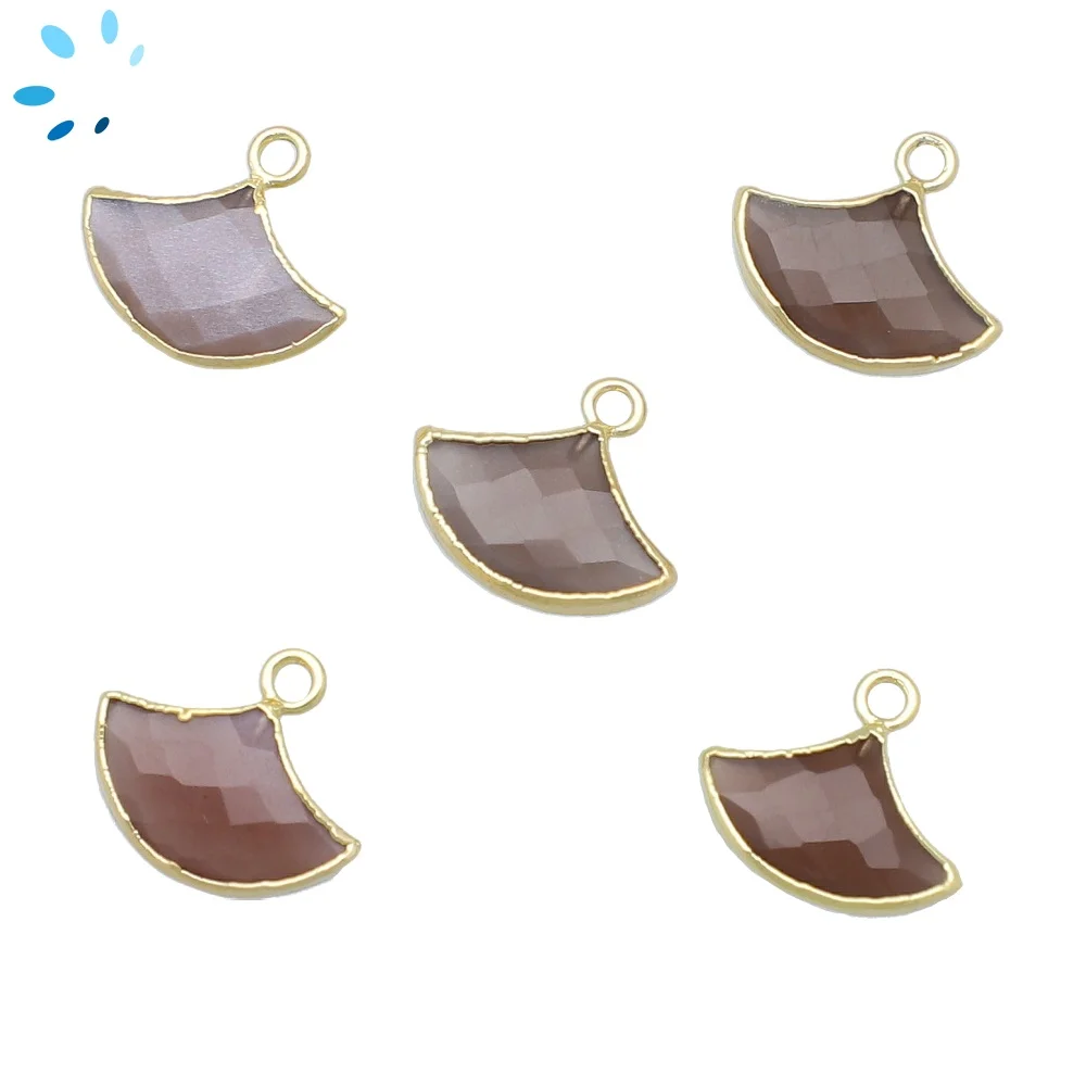 Chocolate Moonstone Fan Pendant Charm 15x10mm 18k Gold Electroplated - Set of 2