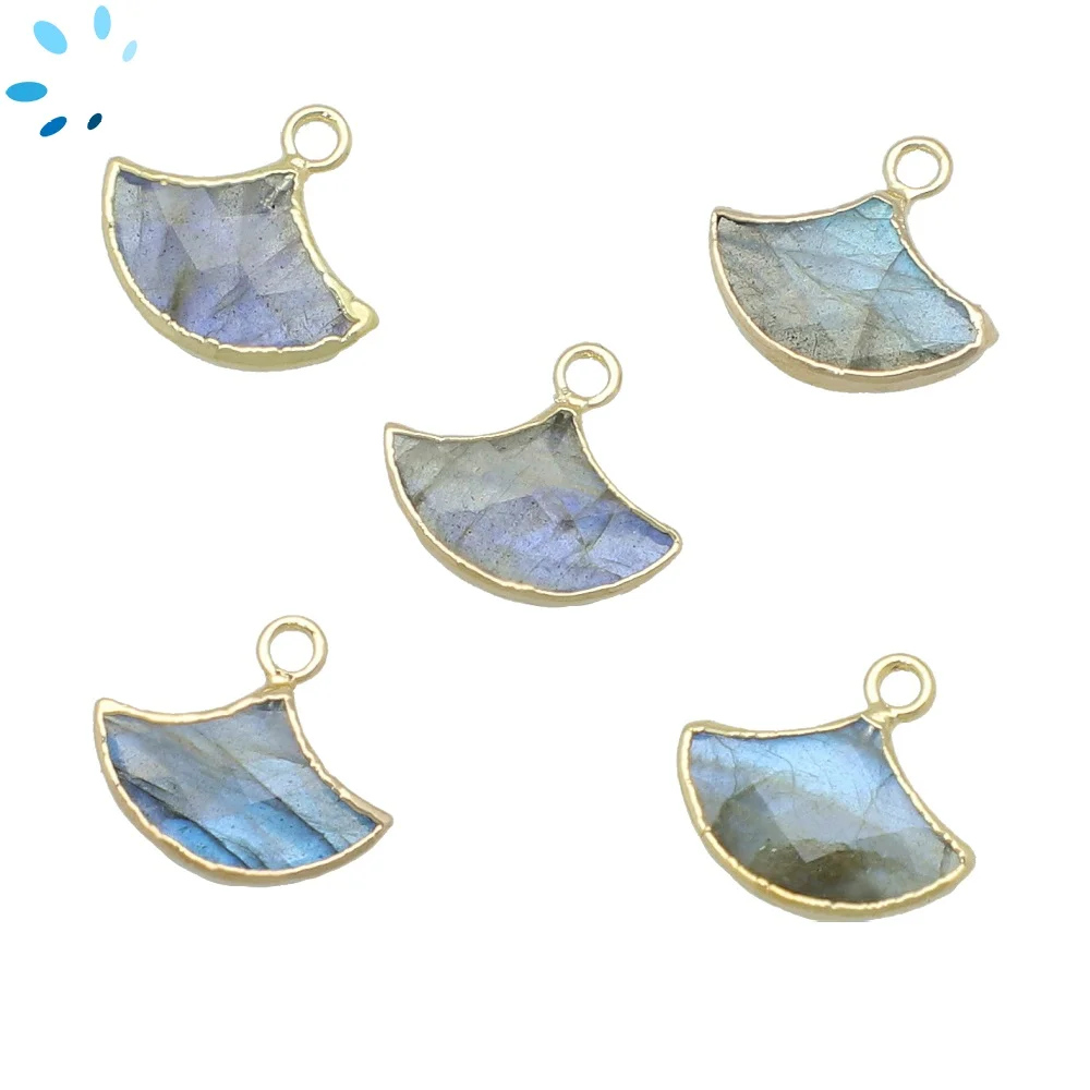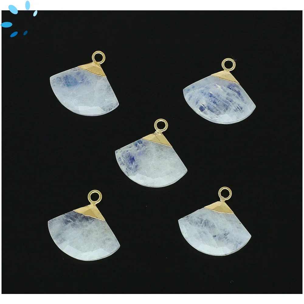 Rainbow Moonstone Fan Charm Pendant 15x10mm 18k Gold Electroplated - Set of 2