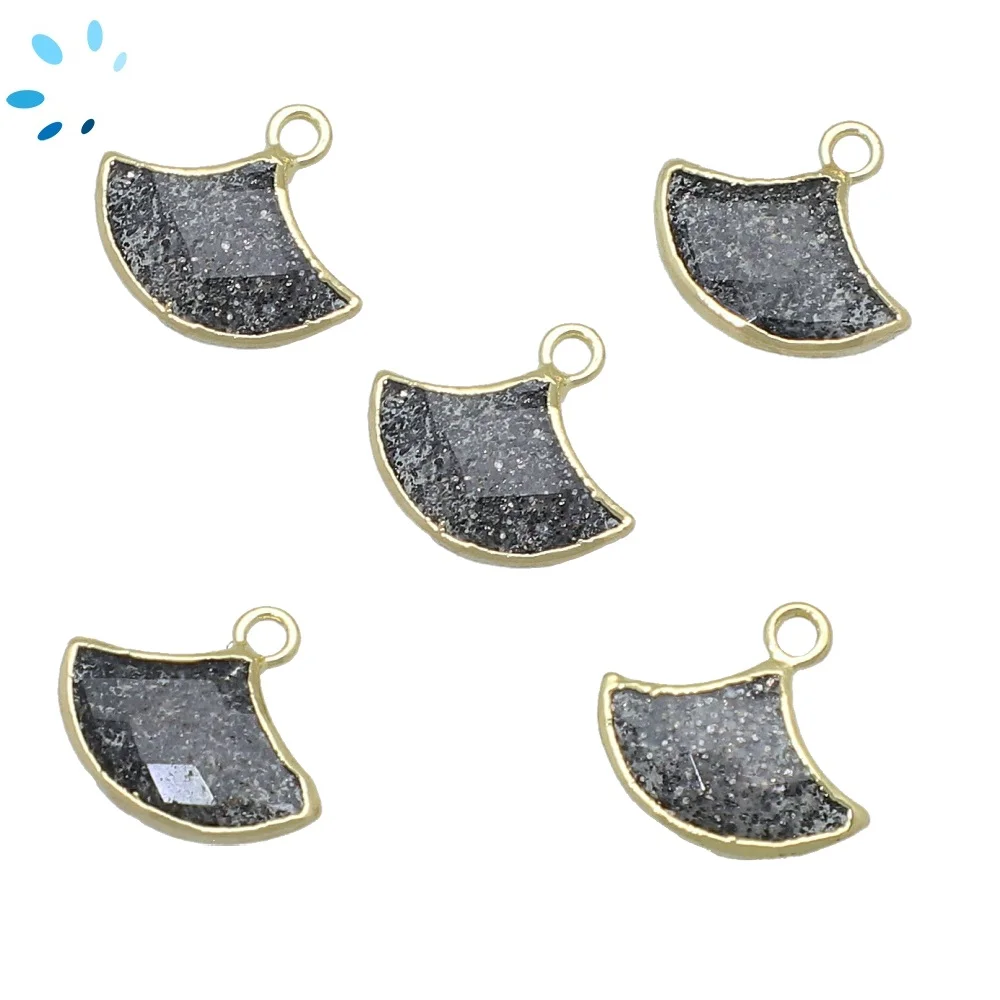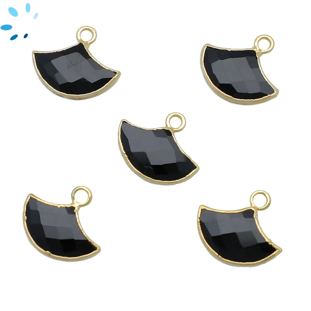 Black Sunstone Fan Pendant Charm 15x10mm 18k Gold Electroplated - Set of 2