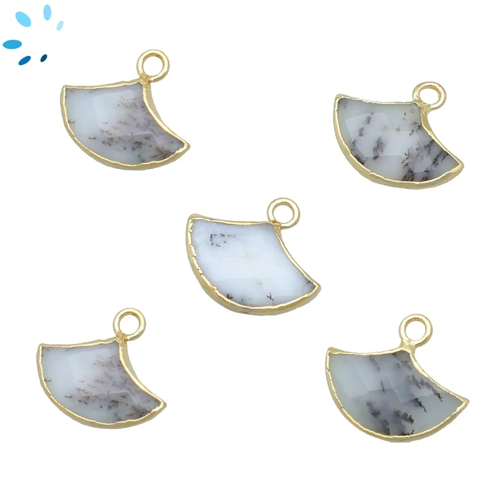 Dendrite Opal Fan Charm Pendant 15x10mm 18k Gold Electroplated - Set of 2