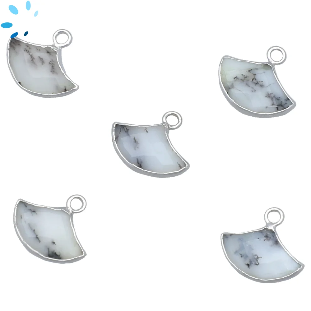 Dendrite Opal Fan Pendant Charm 15x10mm Platinum Electroplated - Set of 2
