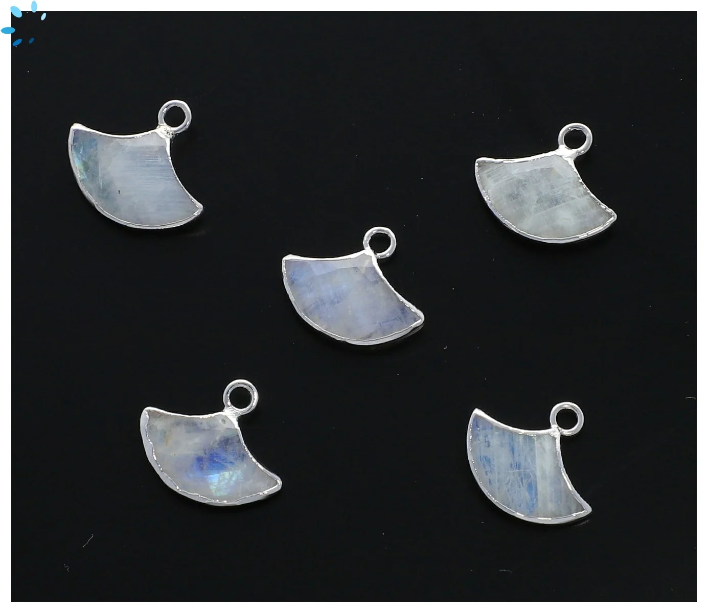 Rainbow Moonstone Fan Pendant Charm 15x10mm Platinum Electroplated - Set of 2