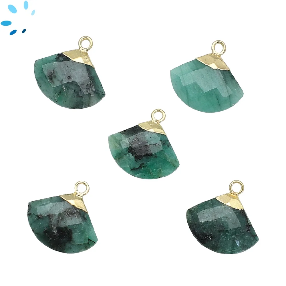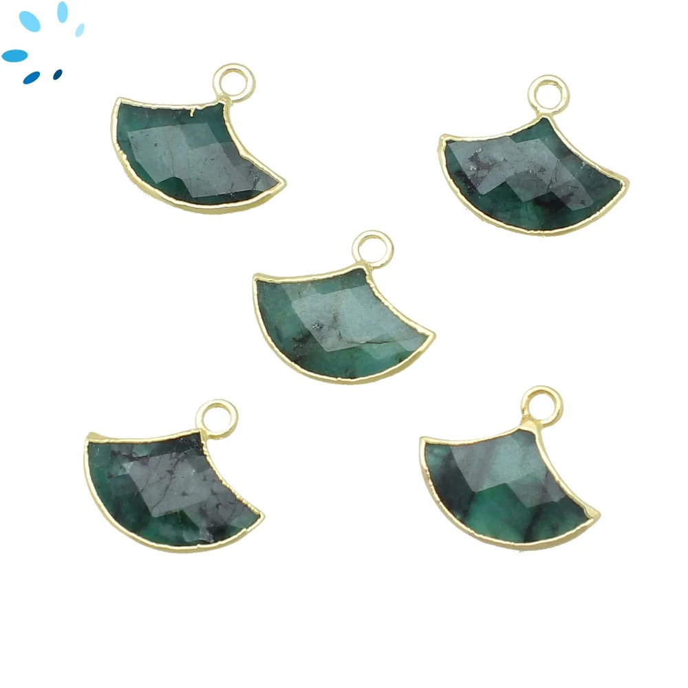 Raw Emerald Fan Charm Pendant 15x10 - 18x12mm 18k Gold Electroplated - Set of 2
